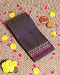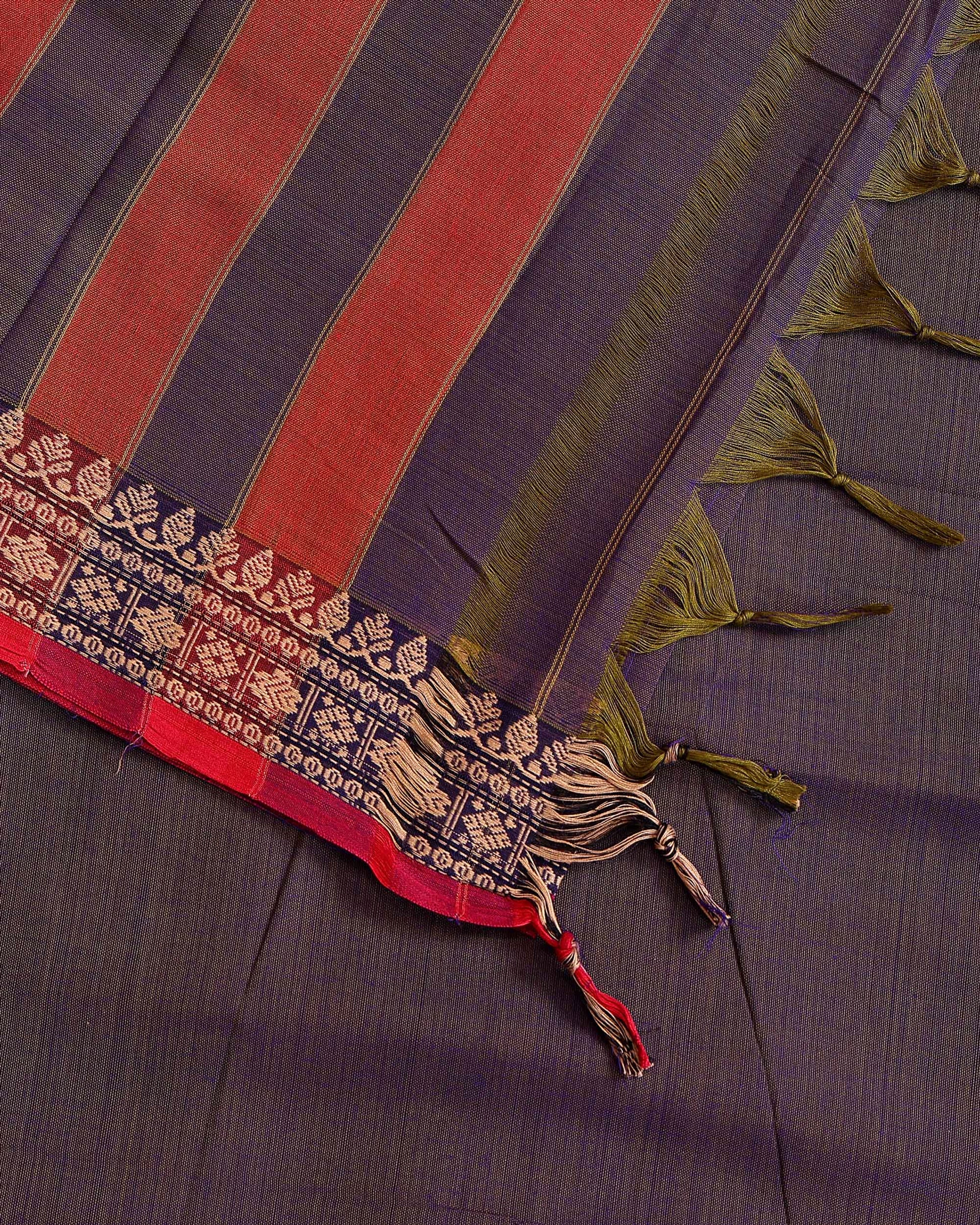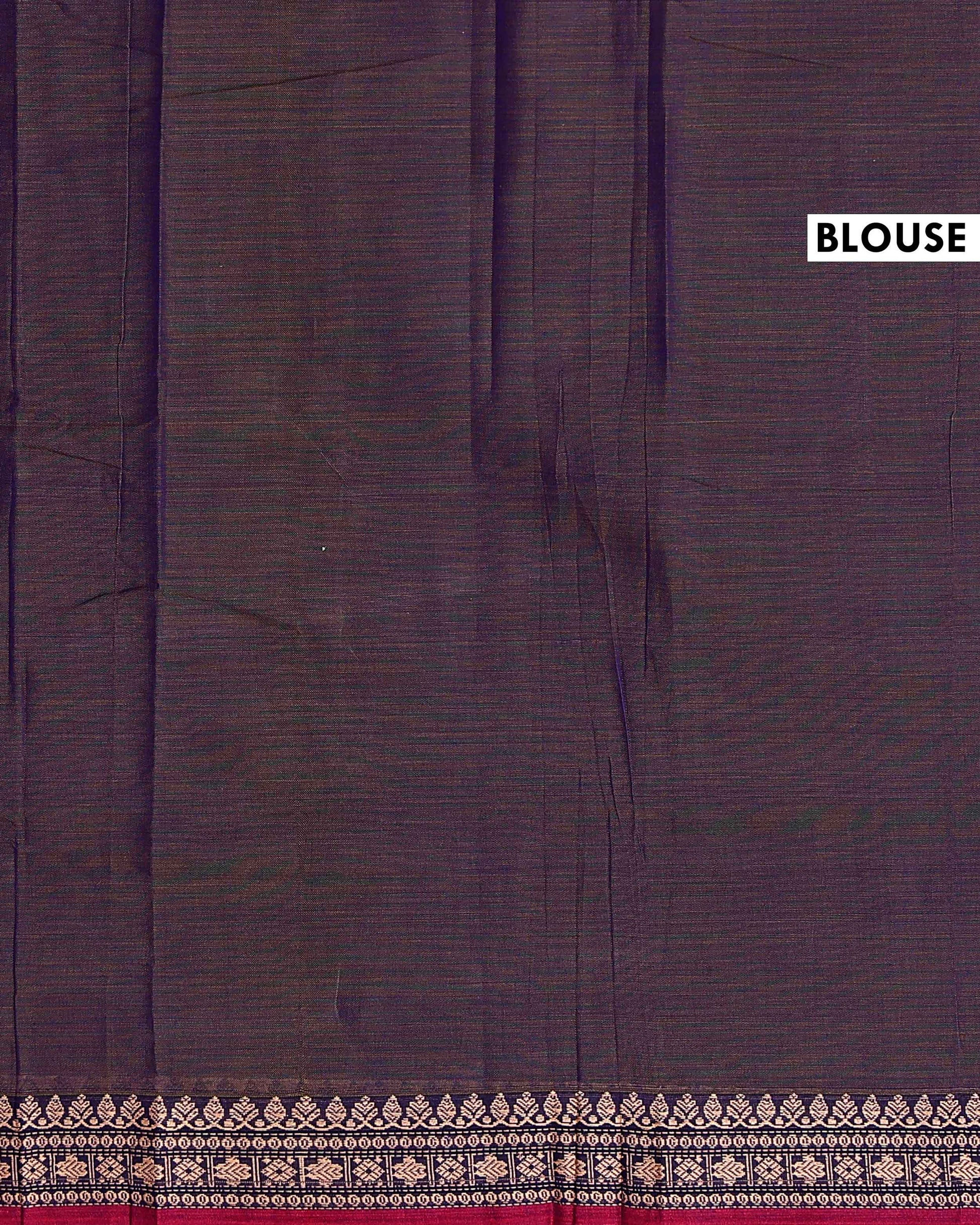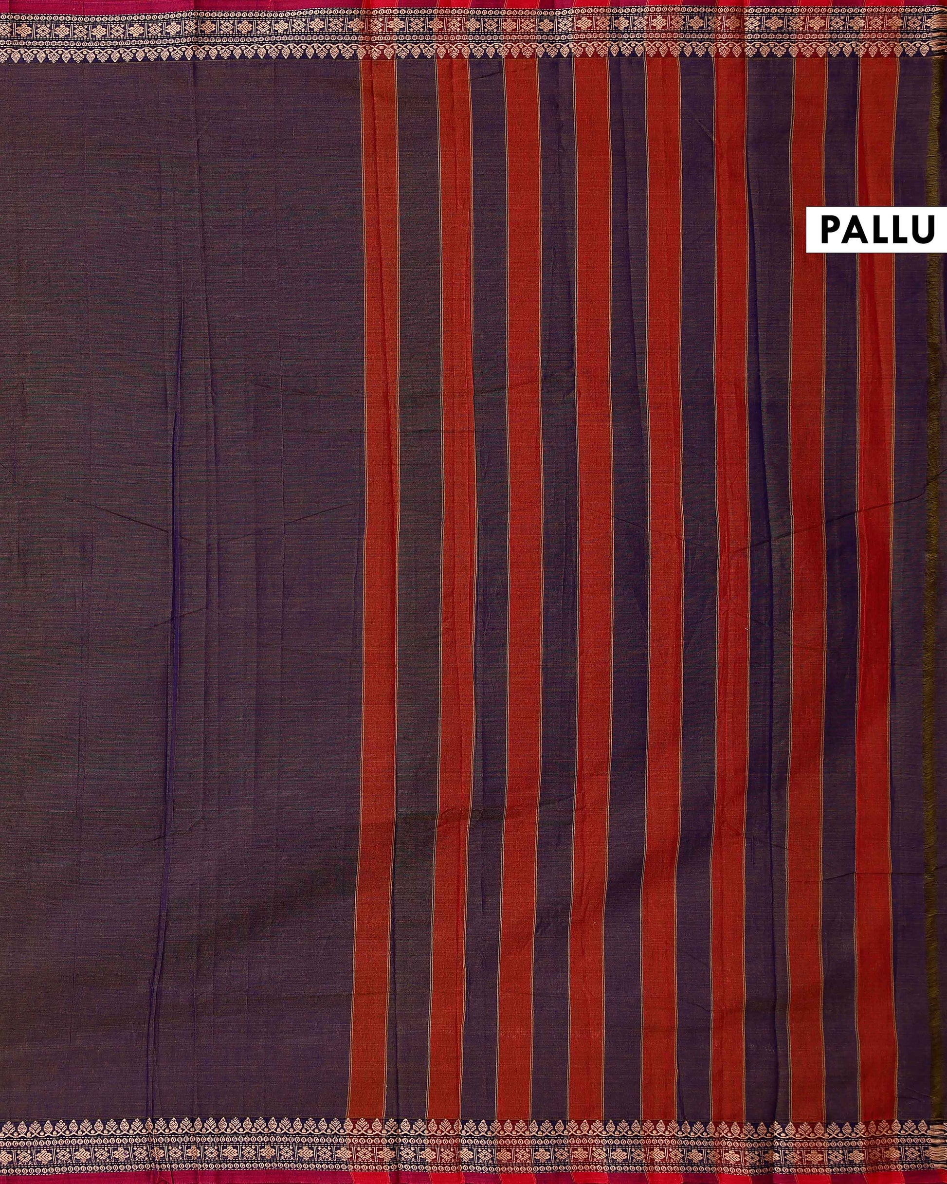 Traditional Narayanpet Cotton Saree with Traditional Zari Border & Temple Motif Detailing - Dark Purple