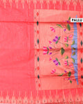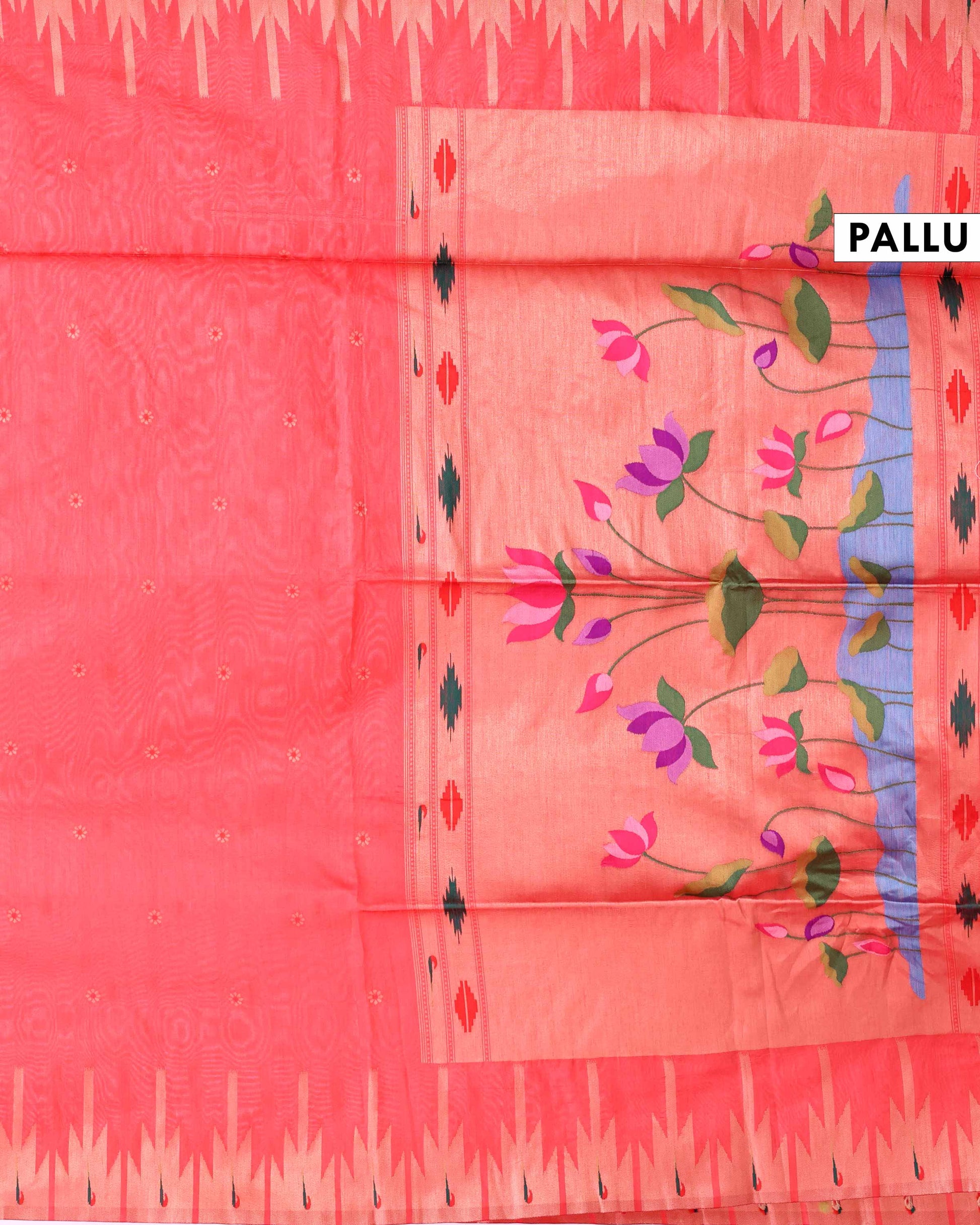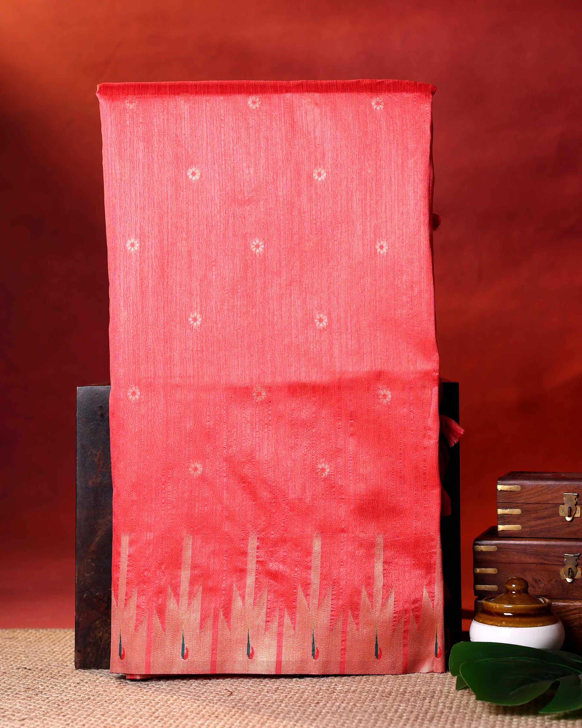 Traditional Paithani Inspired Raw Silk Saree with Butti Motifs and Elegant Temple Inspired Border - Pink