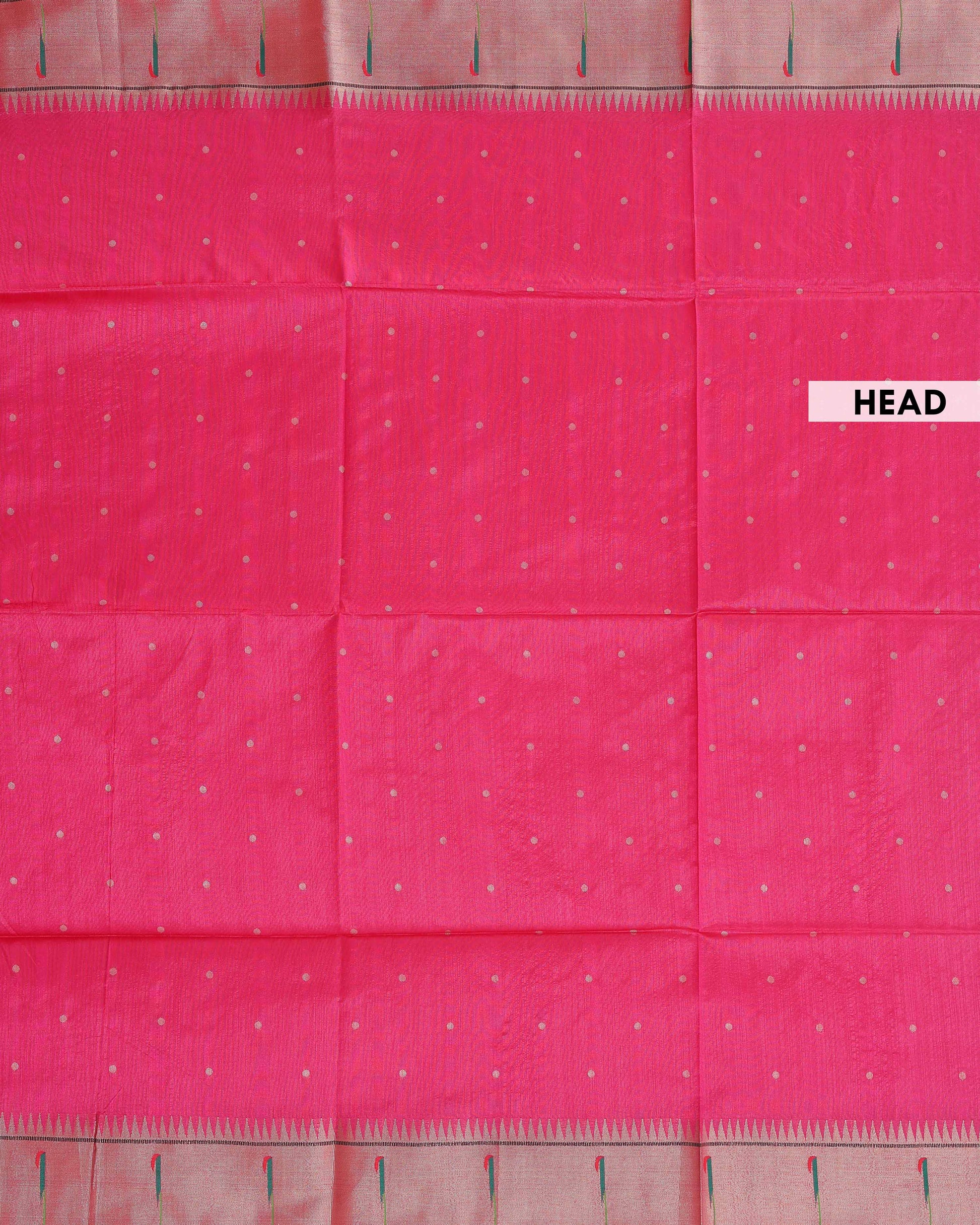 - This Pink Paithani saree is a traditional masterpiece, a rich pallu with intricate peacock and floral weaving