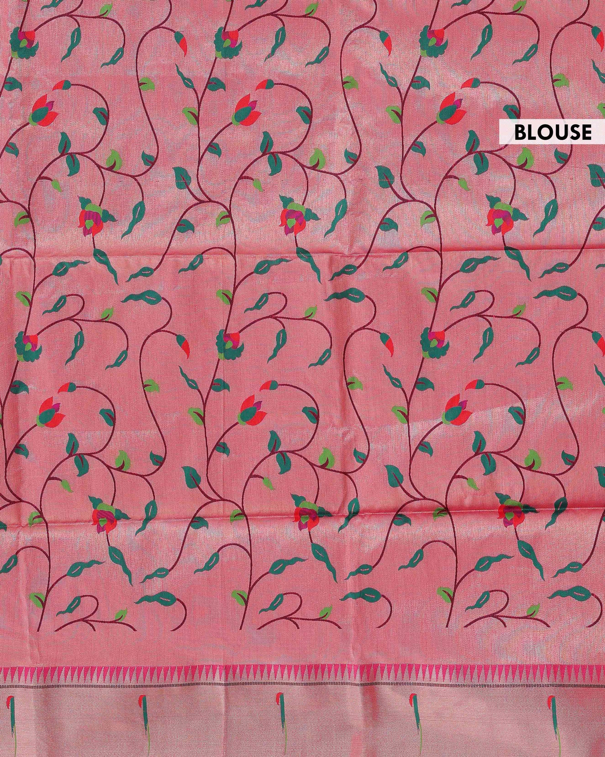 Traditional Paithani Saree with Traditional Peacock and Floral Motifs -Pink