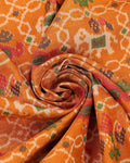 Traditional Patola Semi Silk Saree with Geometric and Floral Motifs - Orange