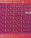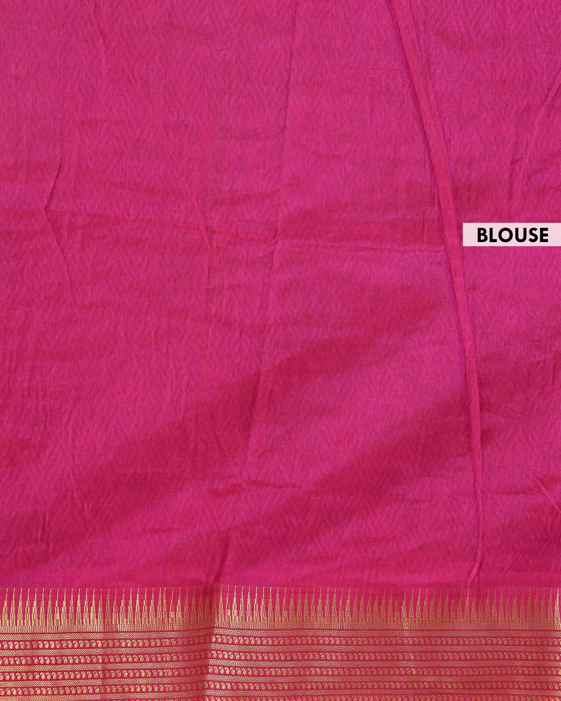 The saree is accentuated by a striking pink and gold zari border, making it a perfect choice for festive occasions and celebrations.