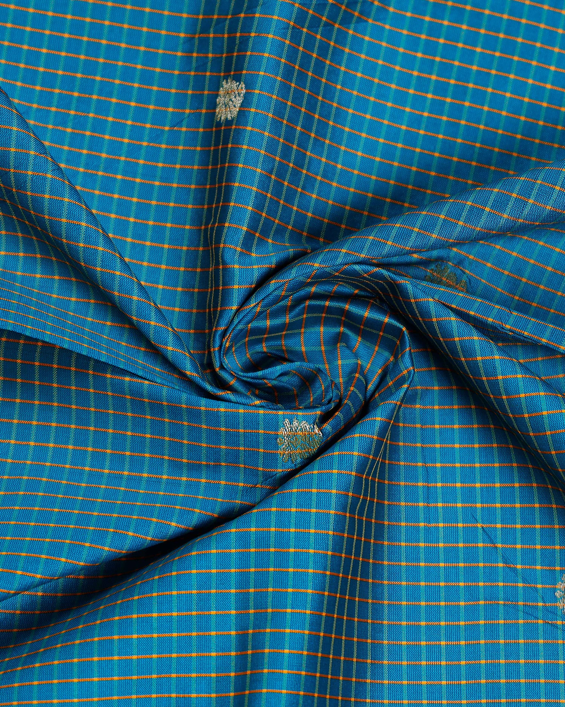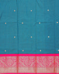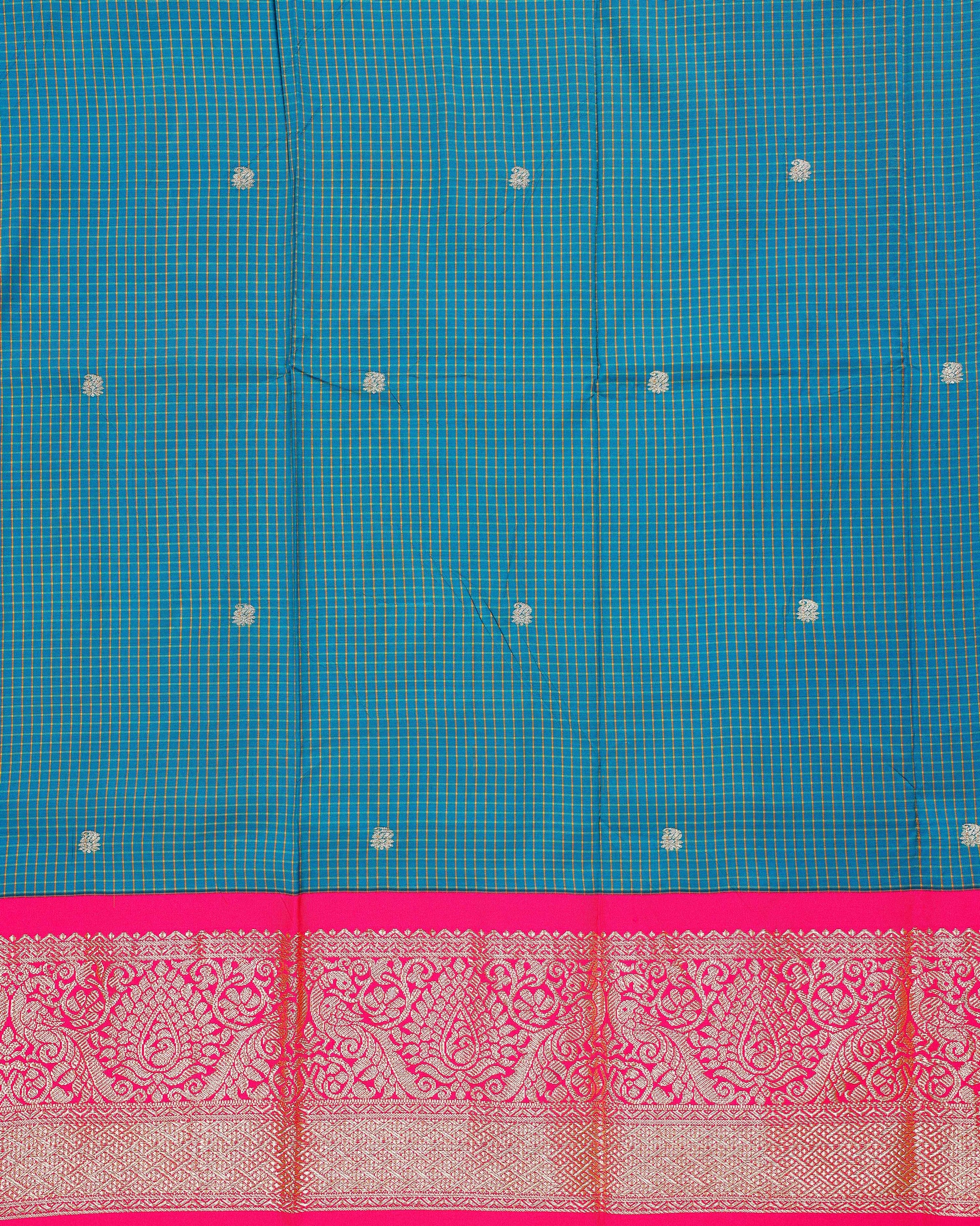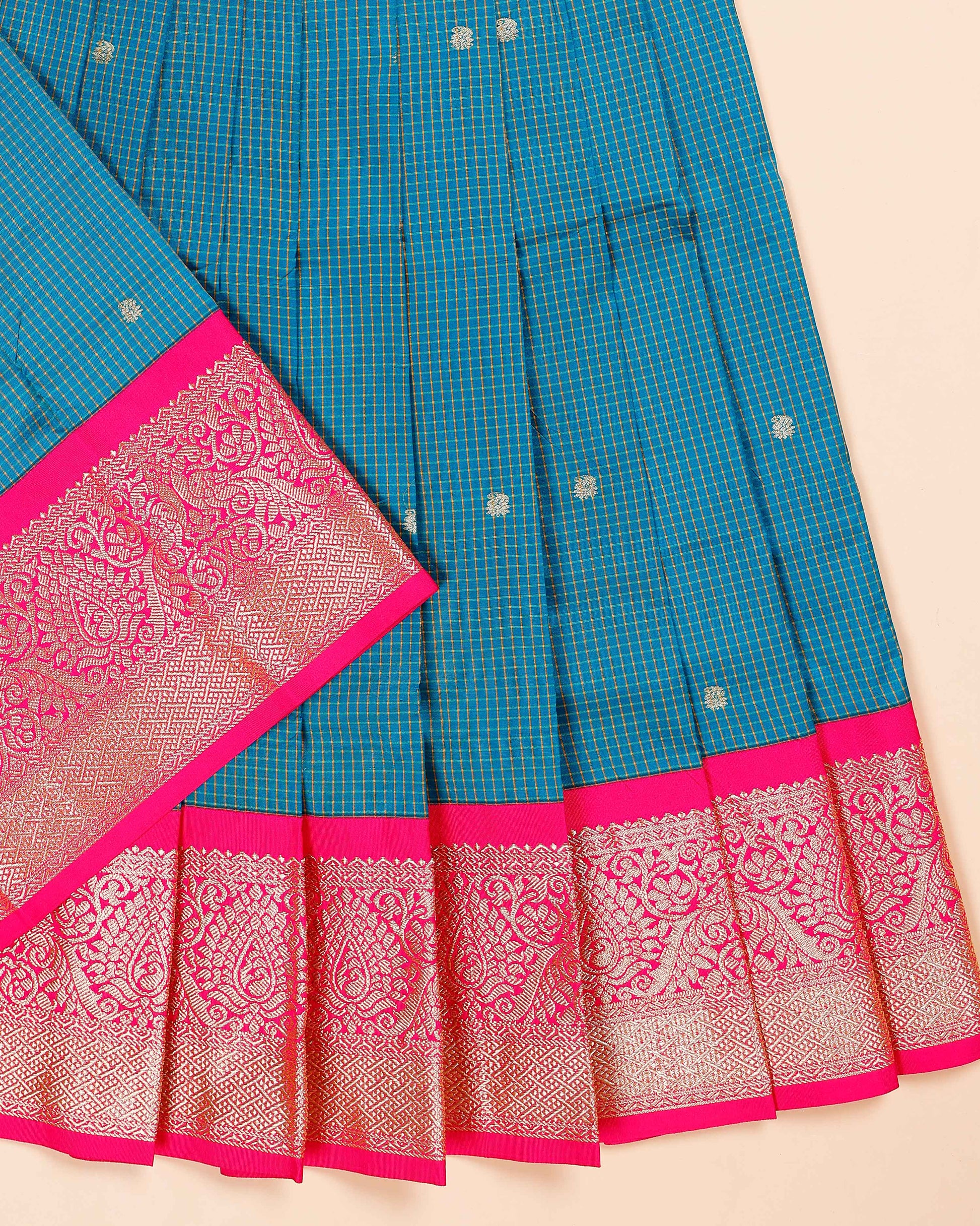 Traditional Pattu Pavadai Material with Zari Border and Checks Pattern - Teal
