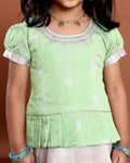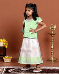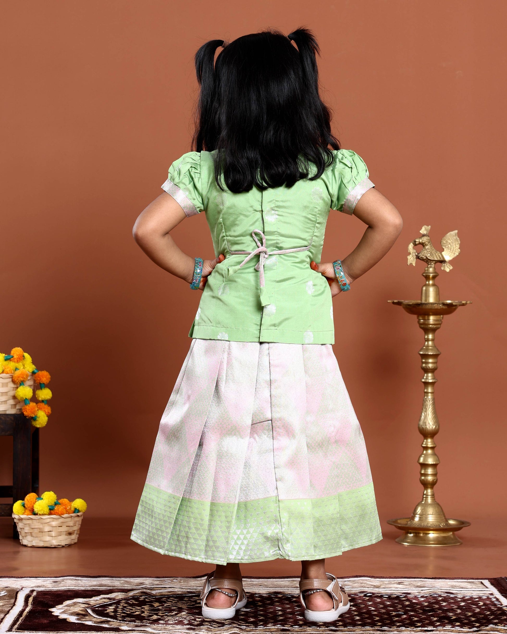Traditional Pattu Pavadai Set With Zari Woven Skirt And Embroidered Blouse- Green