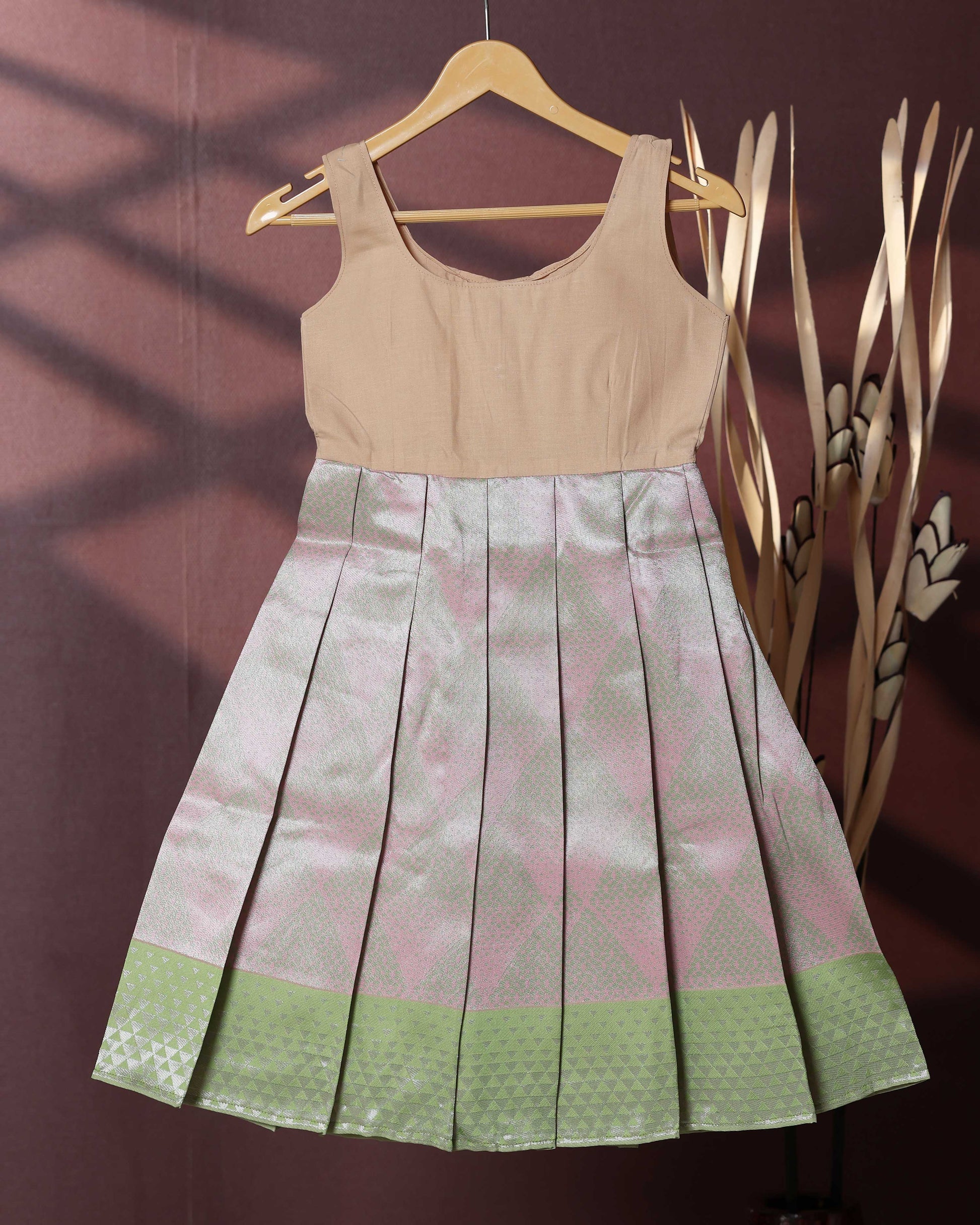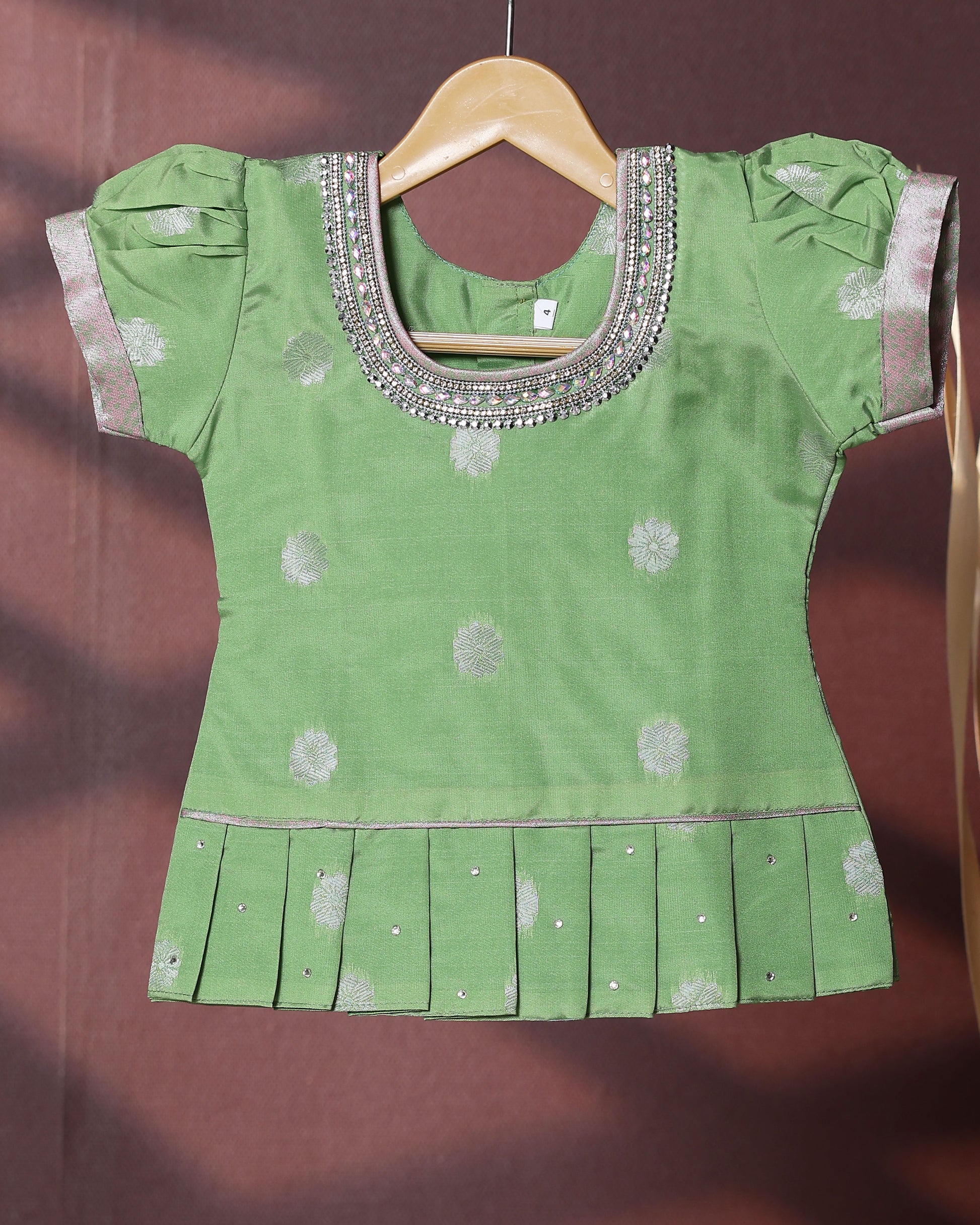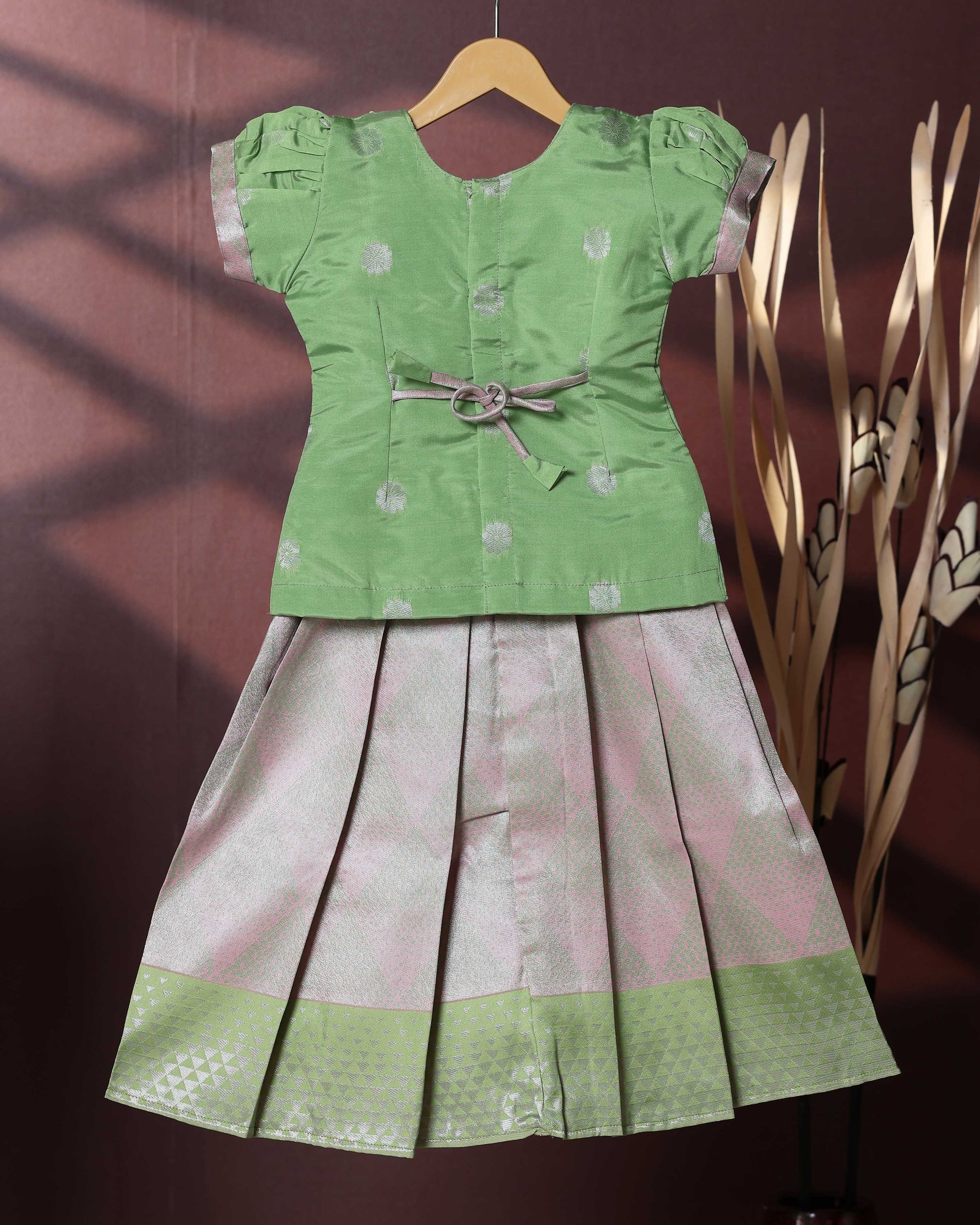 Traditional Pattu Pavadai Set With Zari Woven Skirt And Embroidered Blouse- Green