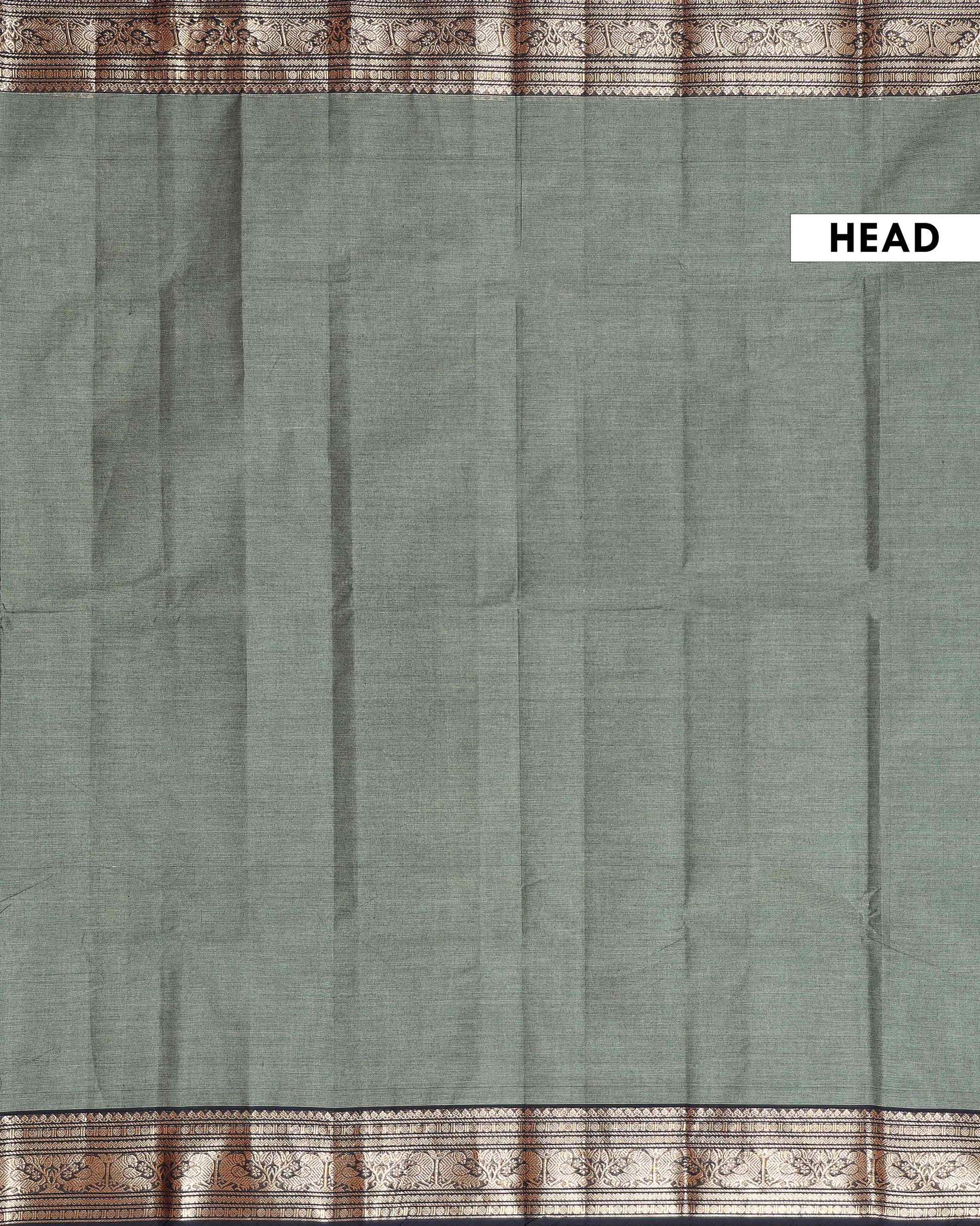 Traditional Premium Kanchi Handwoven Cotton Saree with Zari Border Traditional Peacock Motifs & Fine - Pastel Green