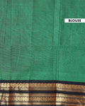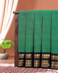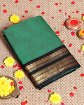 Traditional Pure Handwoven Kanchi Cotton with Striking Contrast Border and Traditional Motifs - Green