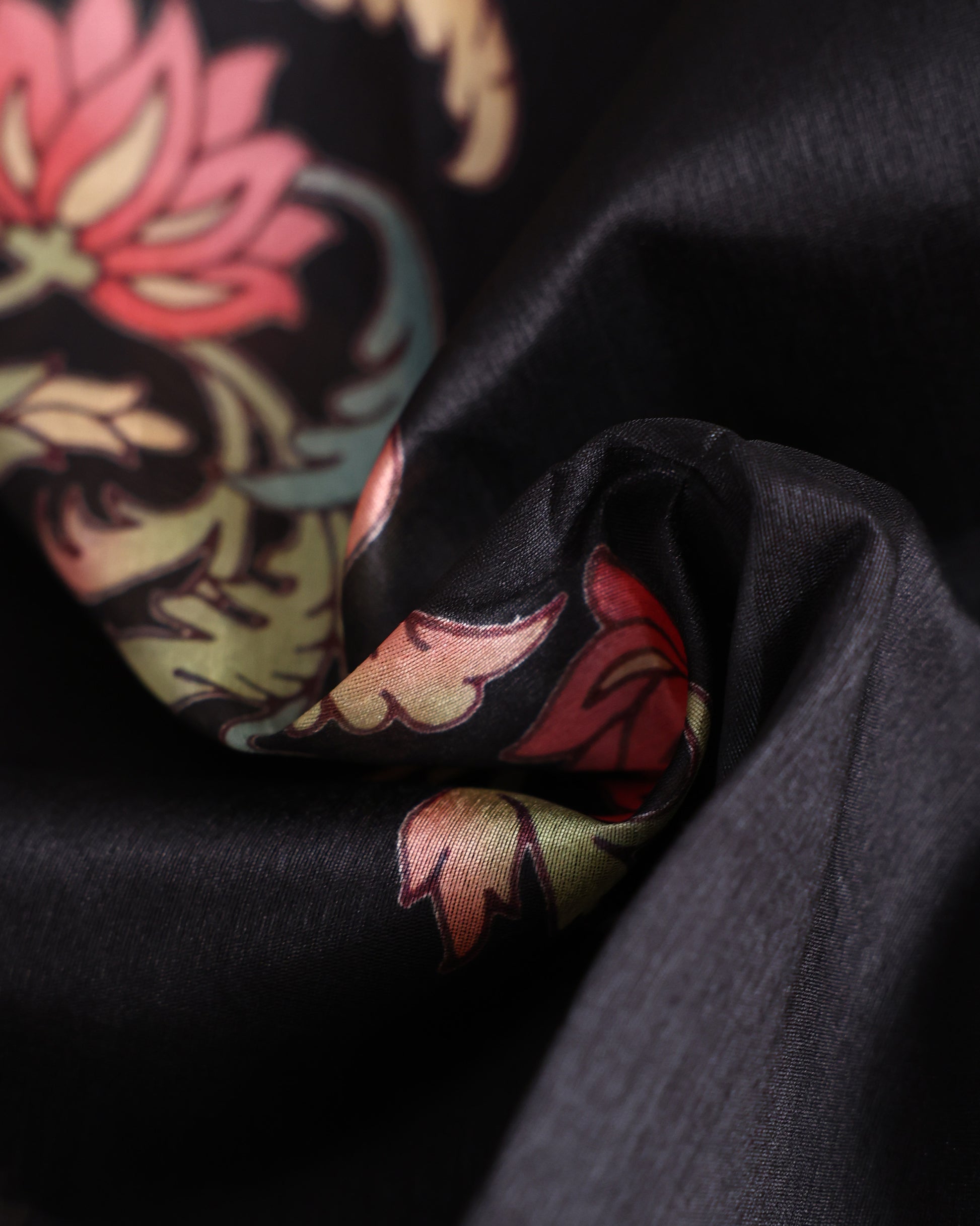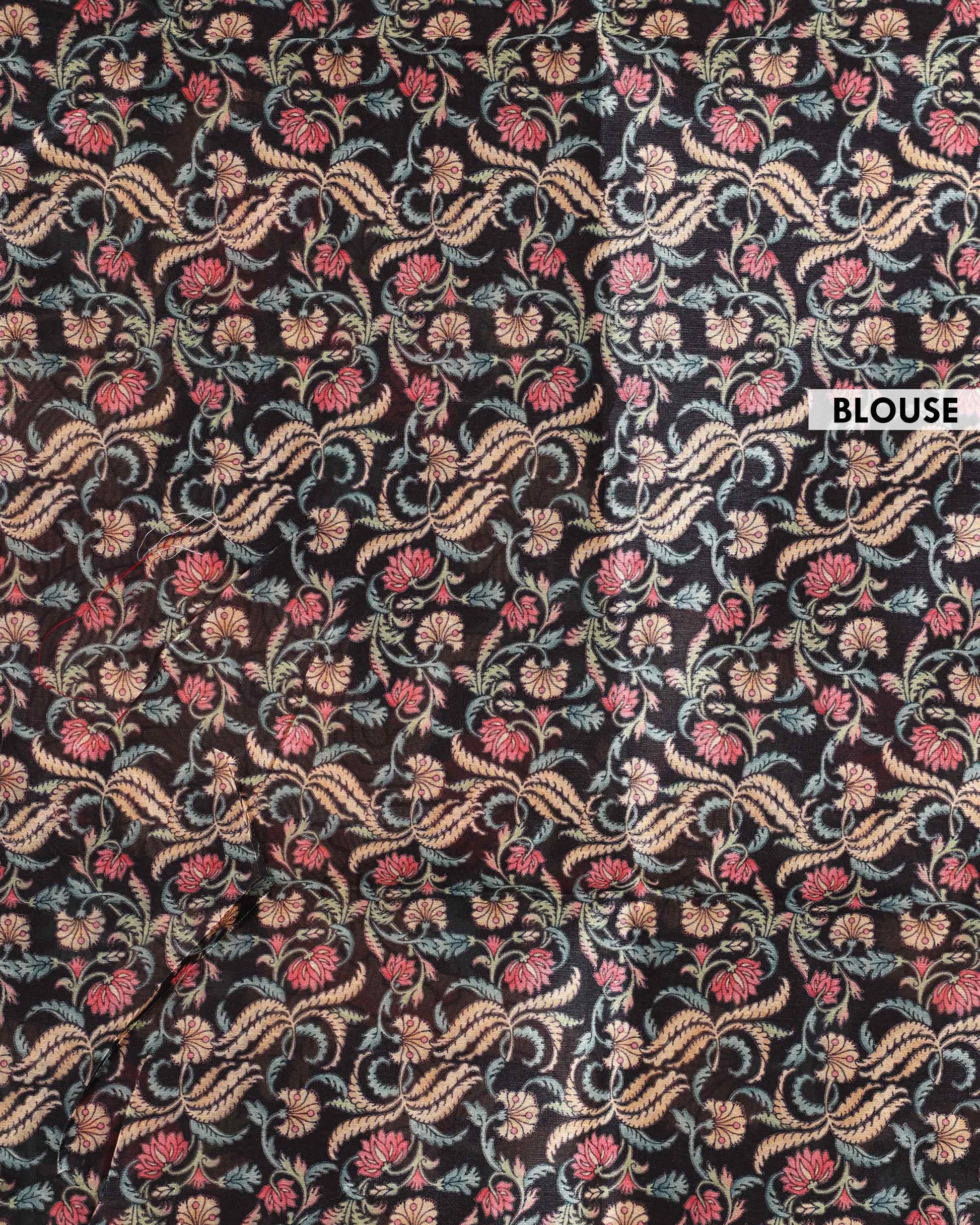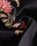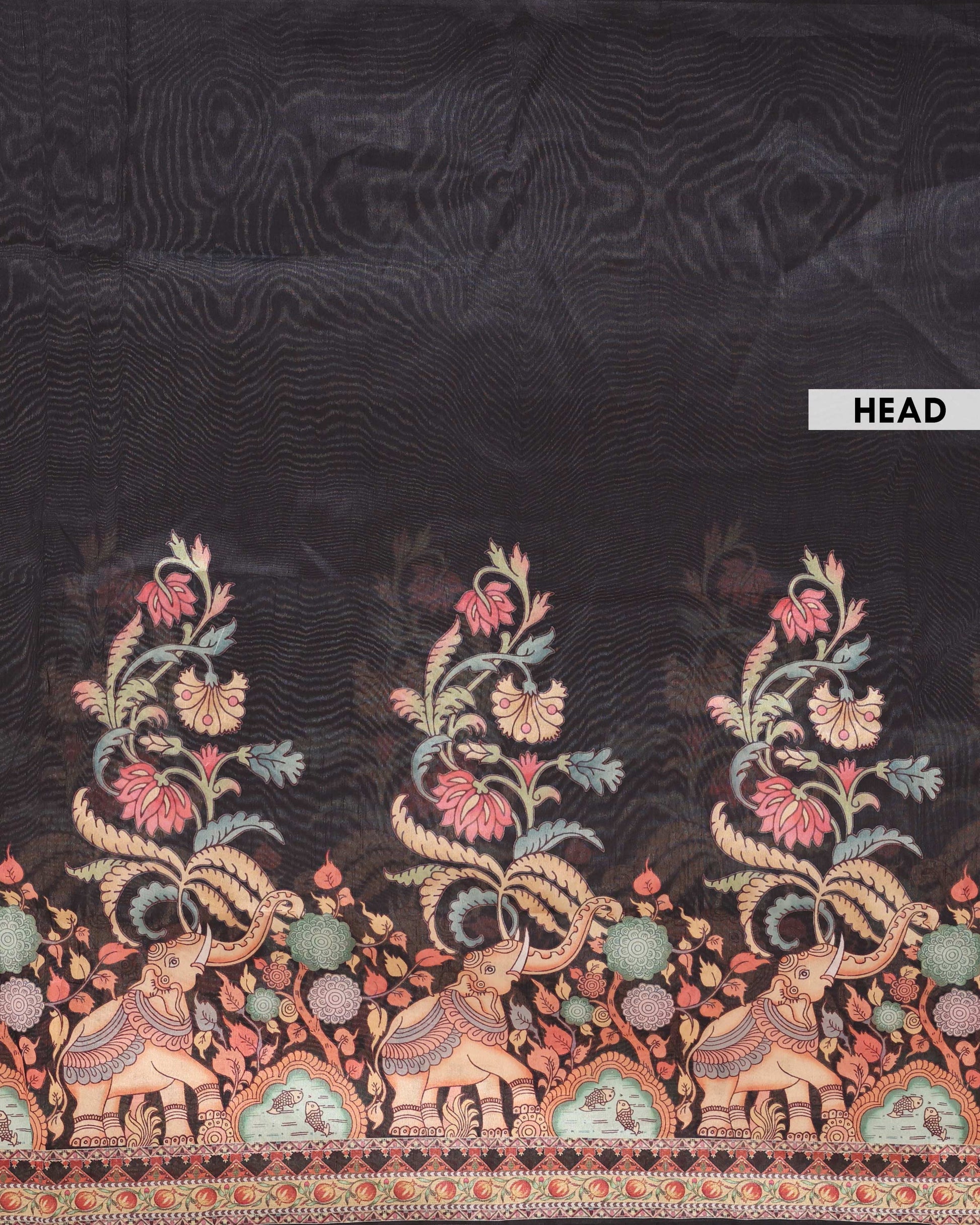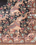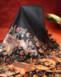 Traditional Raw Silk Saree with Kalamkari Inspired Elephant & Floral Motifs and Heritage Pallu Design - Black