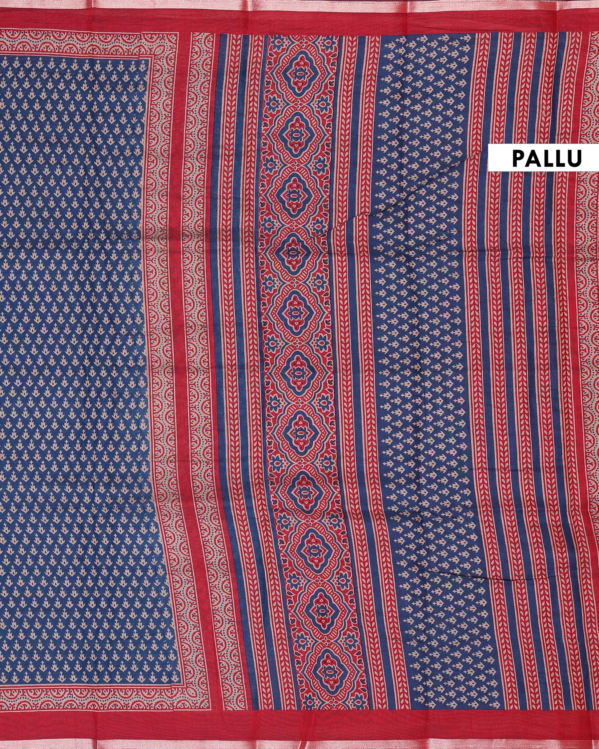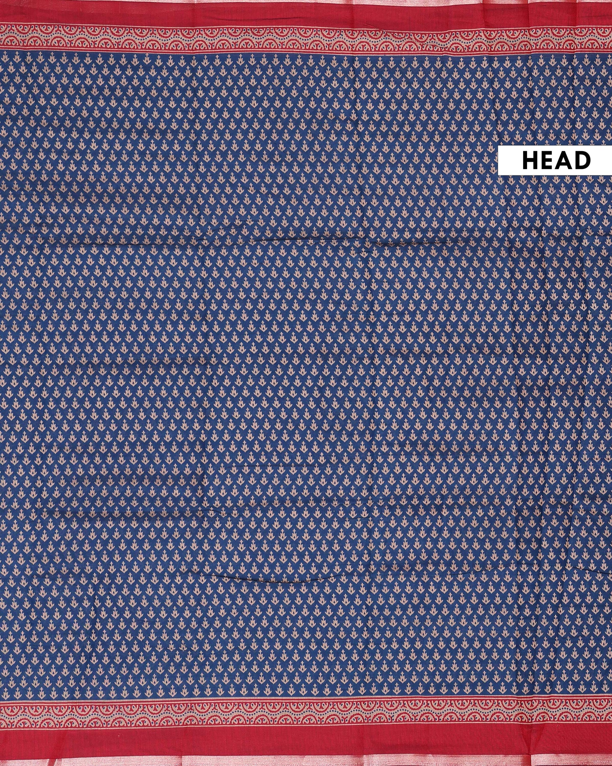 Elegant Semi Chanderi Saree with All Over Buta Weaving and Traditional Woven Border - Blue