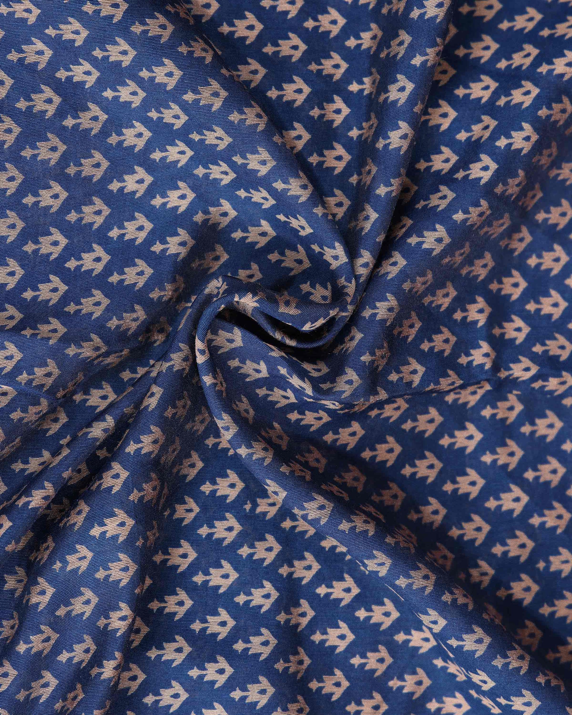 - Graceful Semi Chanderi Saree featuring a smooth lustrous weave, adorned with delicate all over motifs and traditional woven border detailing.