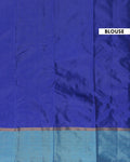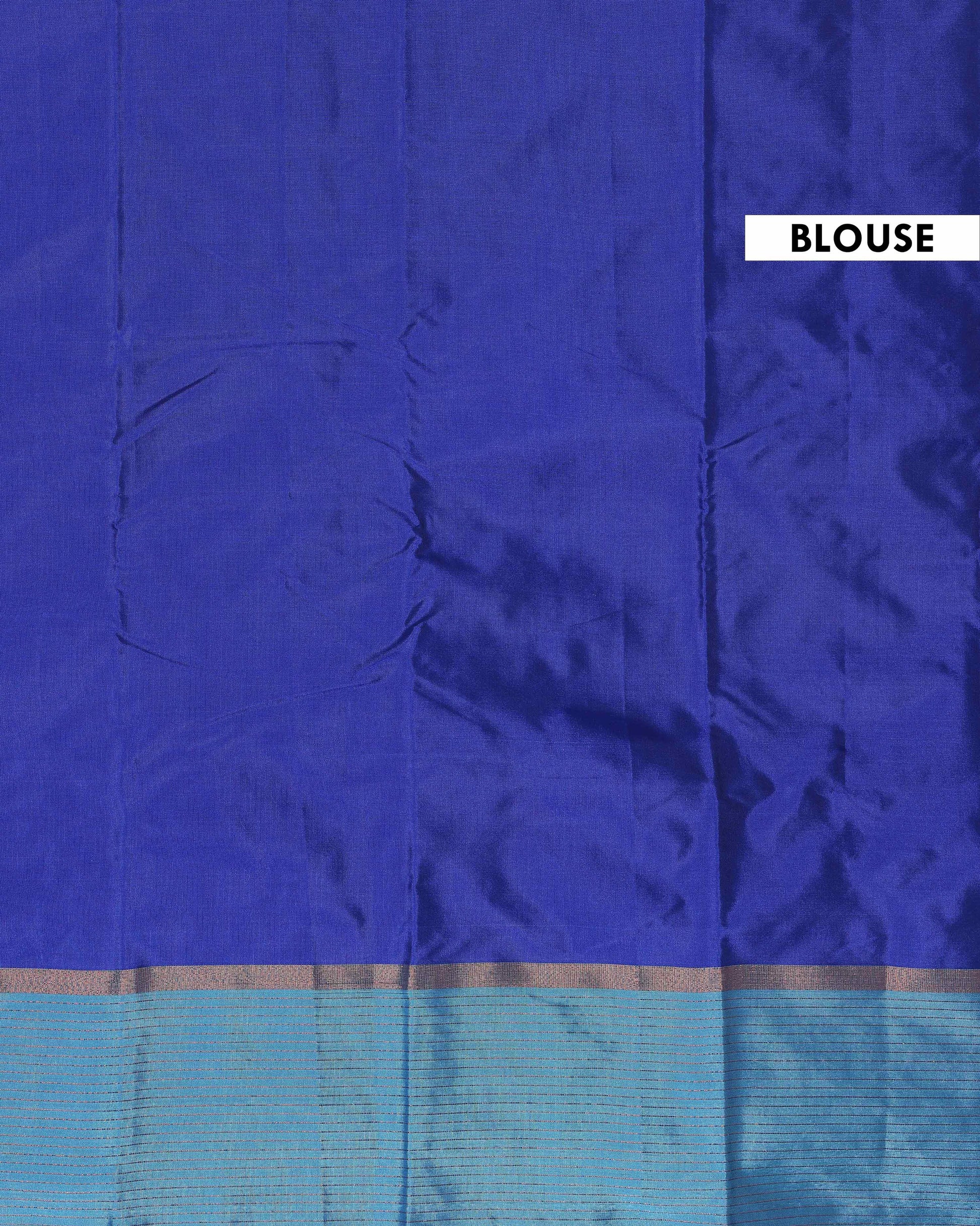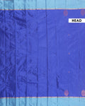 - This royal blue soft silk saree, with its contrasting teal border and delicate zari buttas, is a perfect blend of tradition and modern elegance