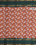 Traditional Sungudi Cotton Saree with Traditional Cow Motif Print and Zari Border Without Blouse - Dark Brown