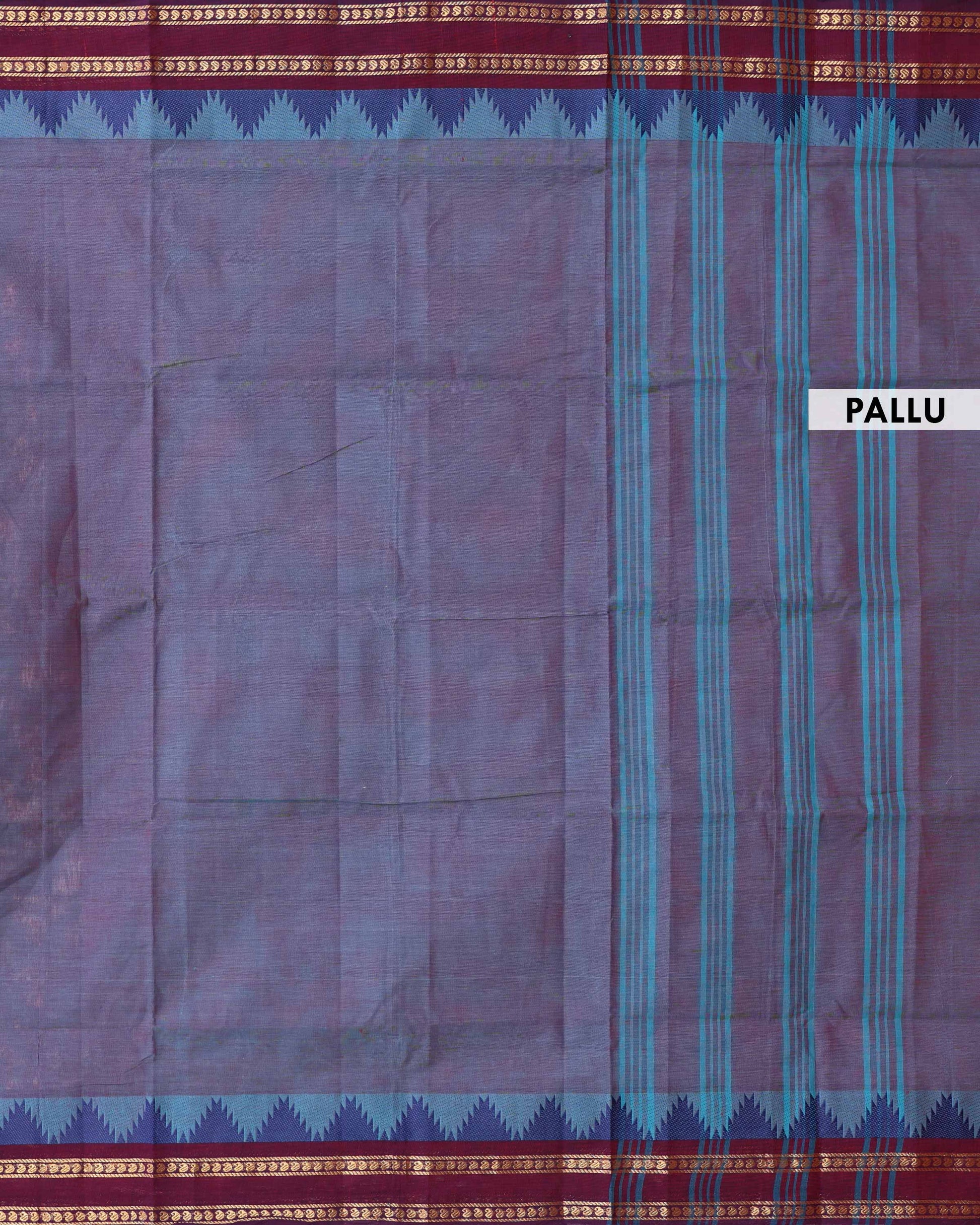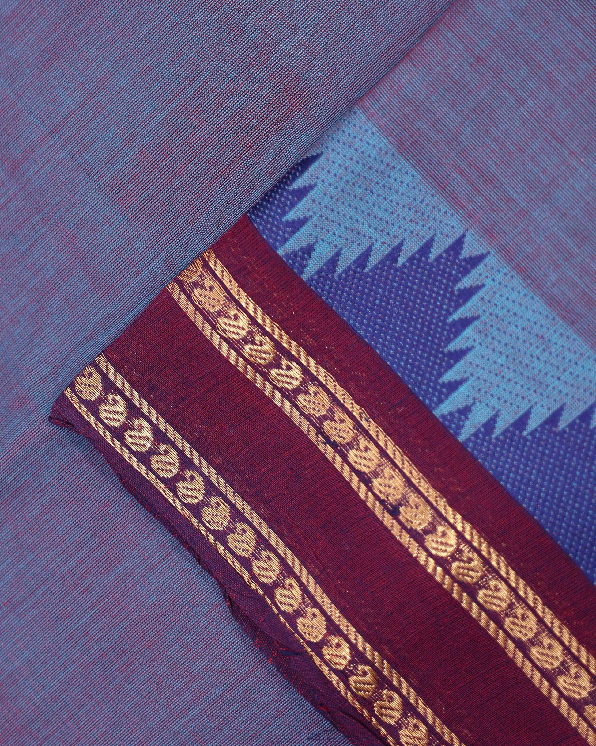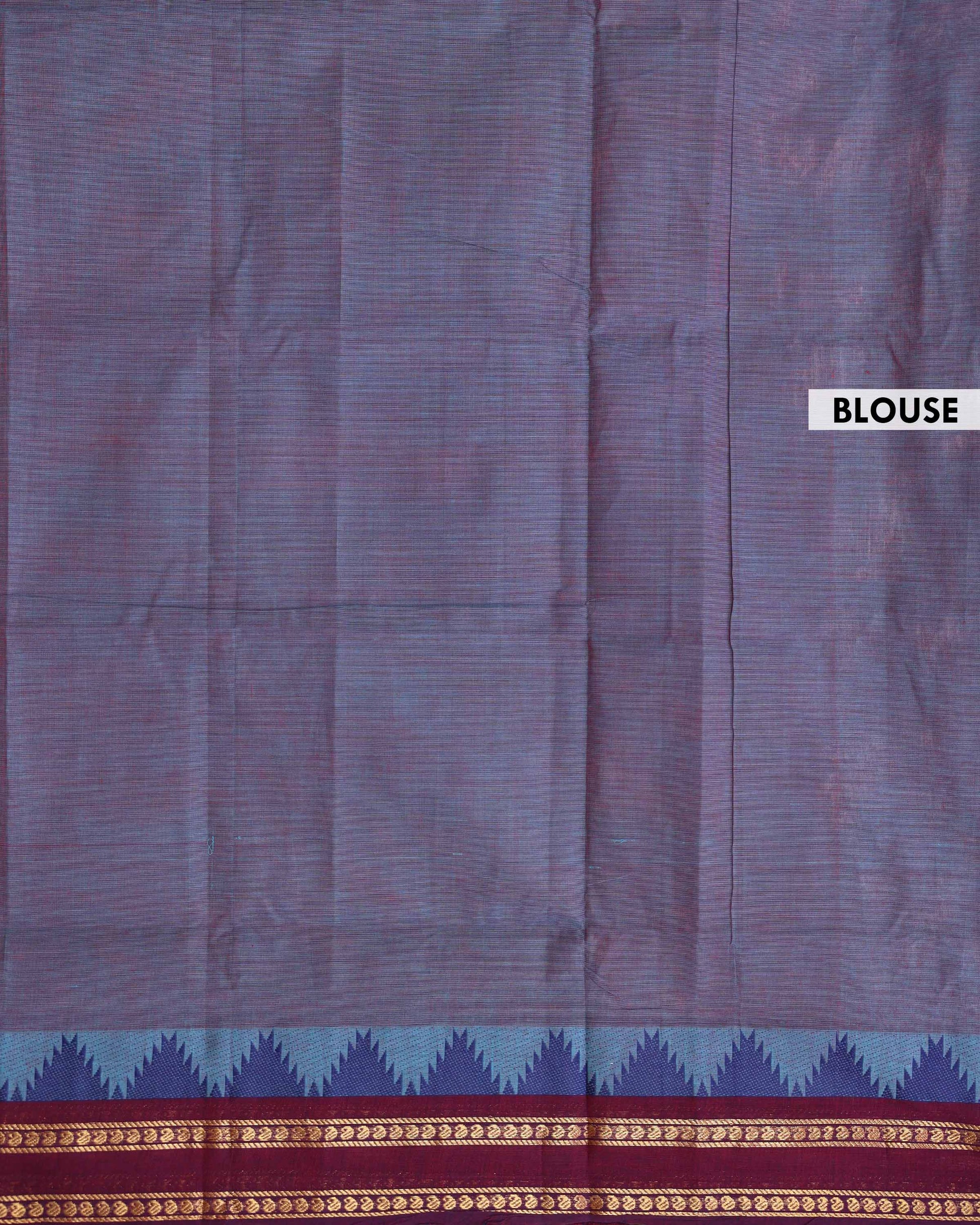 - This elegant handloom Venkatagiri cotton saree a charming Plain body in dual tones of blue and purple, perfect for a classic look
