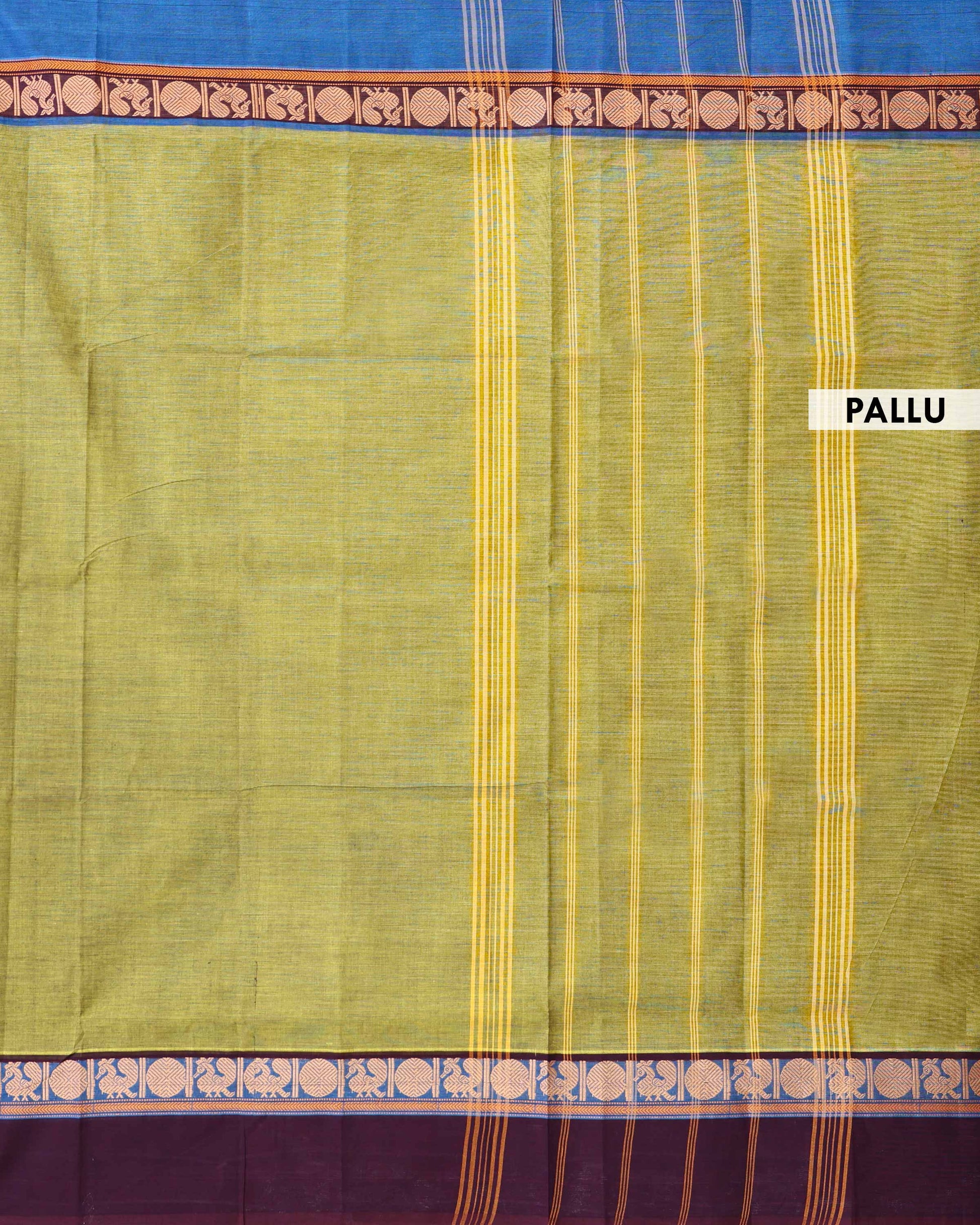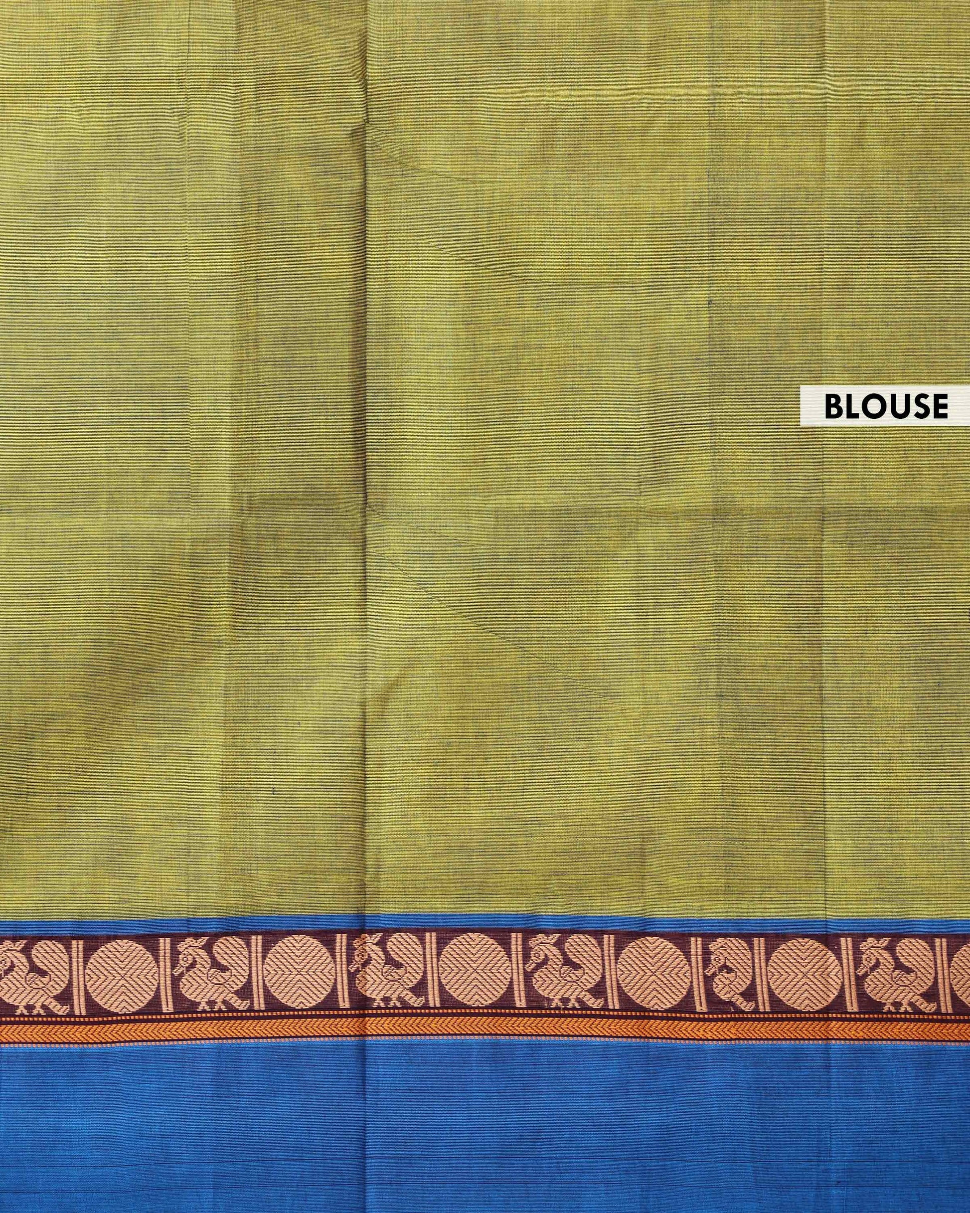 Traditional Venkatagiri Cotton Saree with Plain Body and Intricate Zari Woven Circular & Bird Motif Border - Lime Green