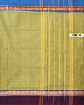 Elevate your style with this stunning Lime Green Handwoven Cotton Saree a rich contrast maroon border with traditional motifs.