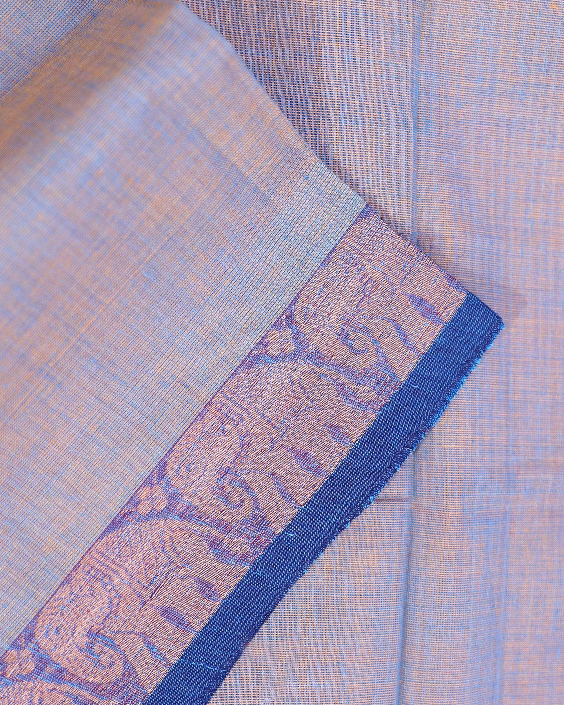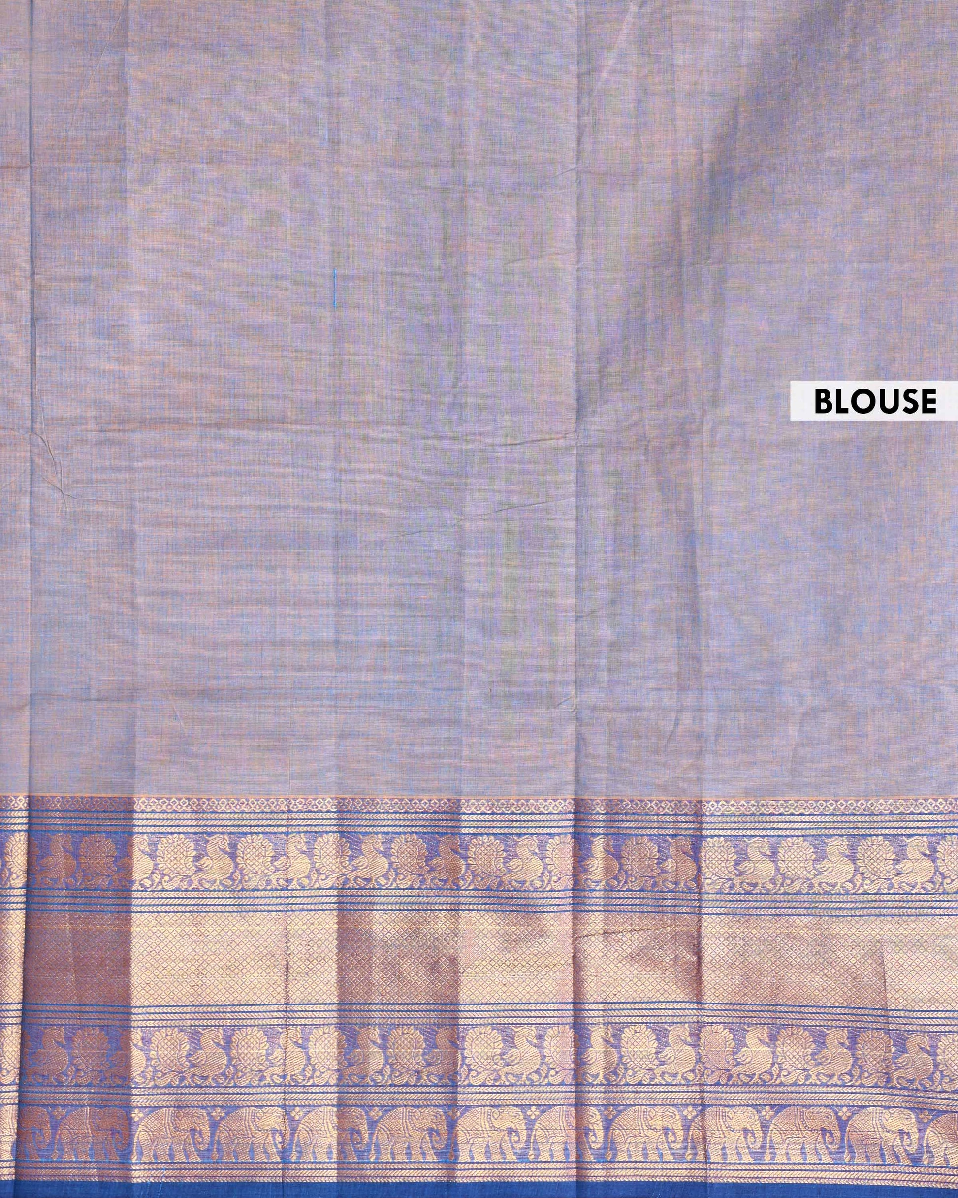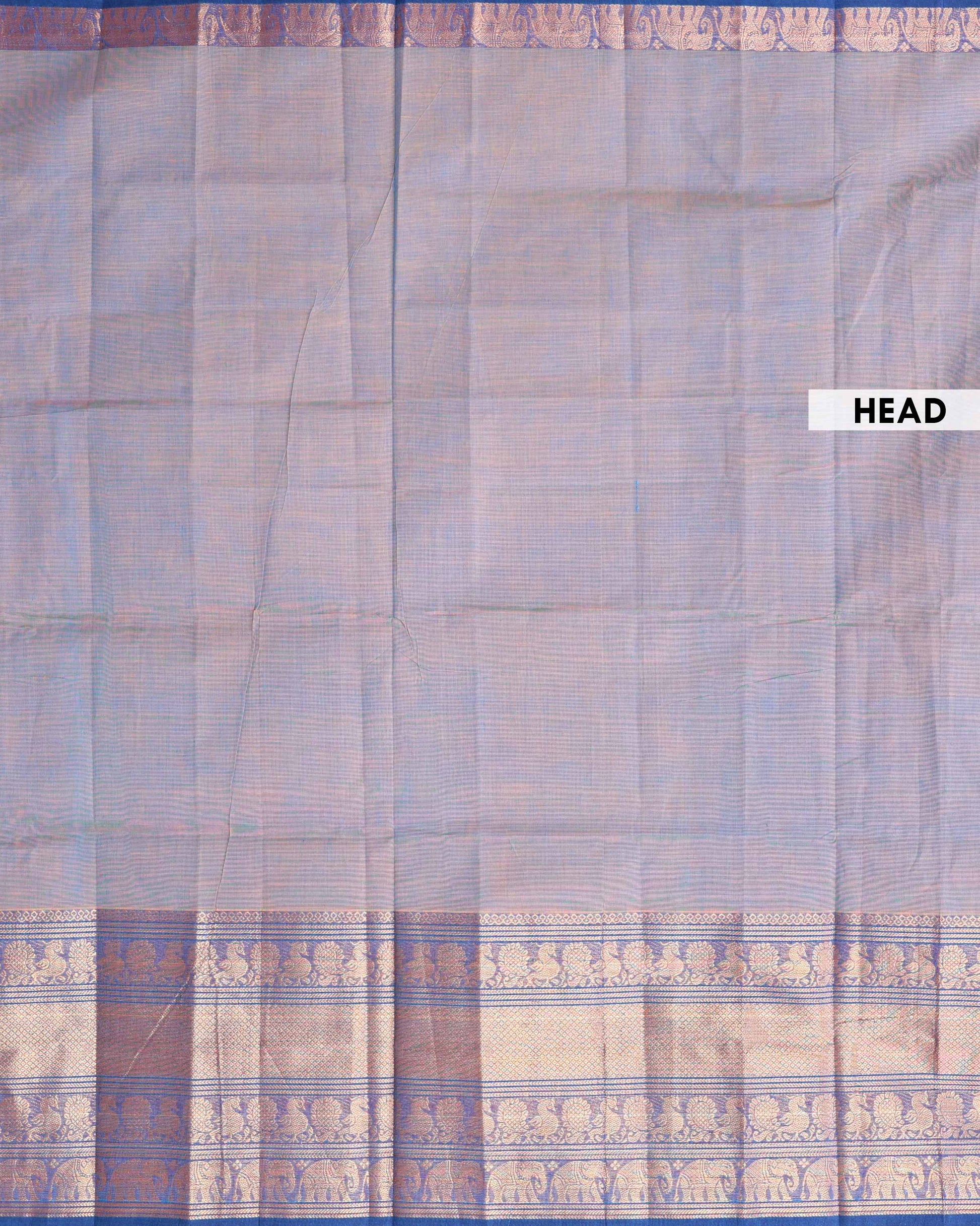 - Discover this elegant handloom Venkatagiri cotton saree in a blue a traditional royal blue border with intricate gold zari elephant and peacock motifs