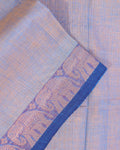 Traditional Venkatagiri Cotton Saree with Plain Body and Intricate Zari Woven Peacock Elephant & Floral Motif Border - Light Blue