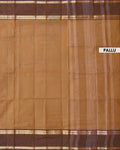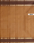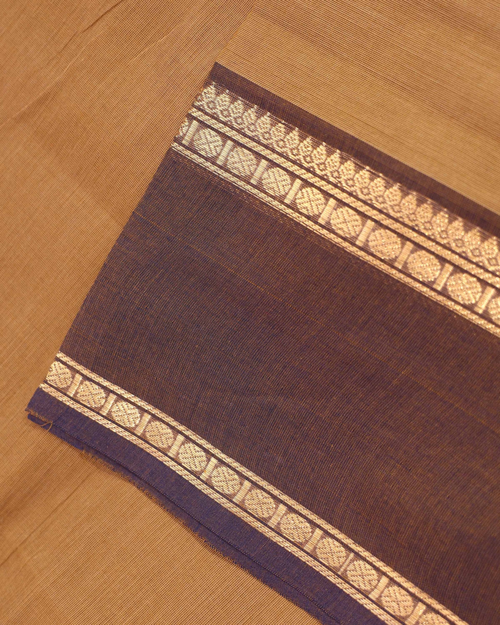 - Handloom Venkatagiri cotton saree in a rich golden brown featuring a classic dark brown and gold zari border