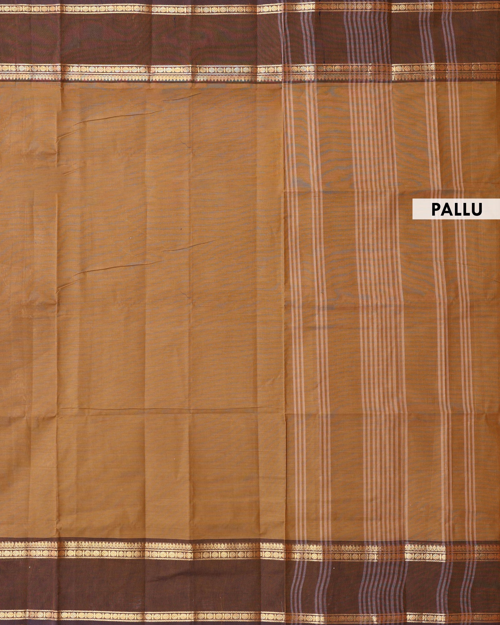 Traditional Venkatagiri Cotton Saree with Plain Body and Zari Woven Contrast Border - Brown