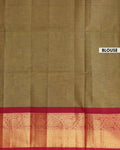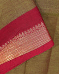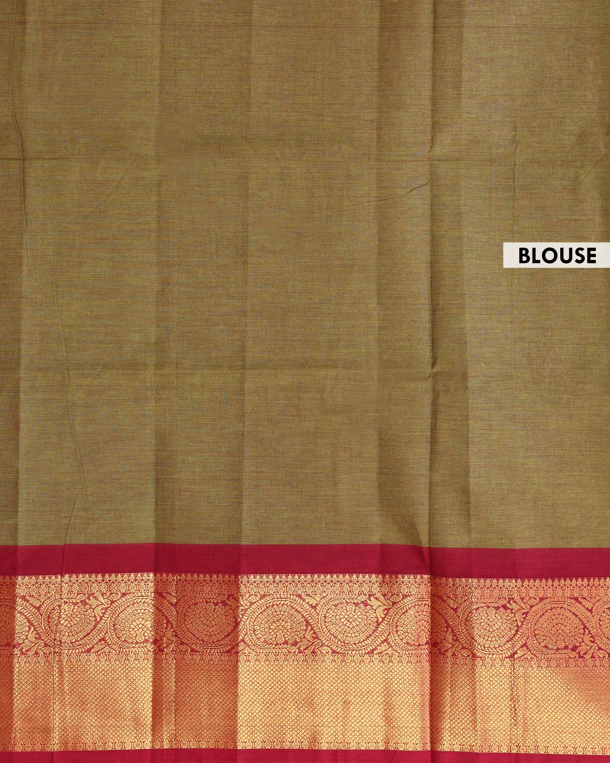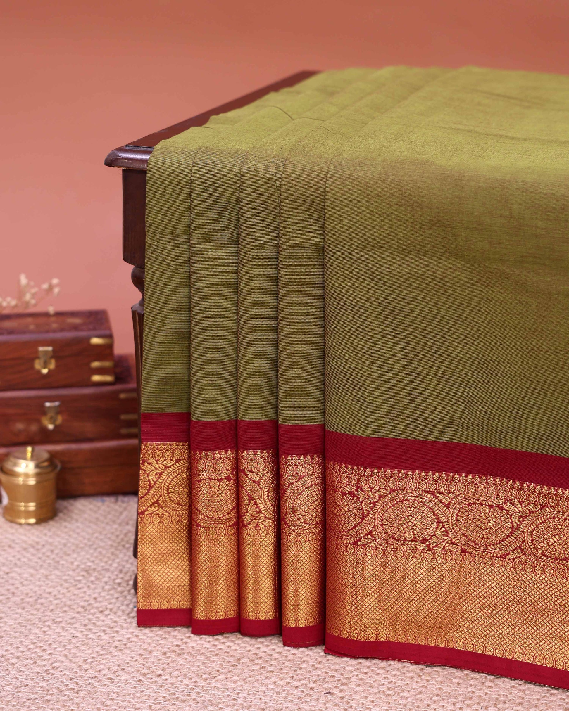 Traditional Venkatagiri Cotton Saree with Plain Body and Zari Woven Floral Motif Contrast Border - Olive Green