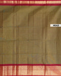 - Elevate your style with this authentic Venkatagiri Cotton Saree a vibrant olive green body with classic checks and a rich, traditional red and gold zari border