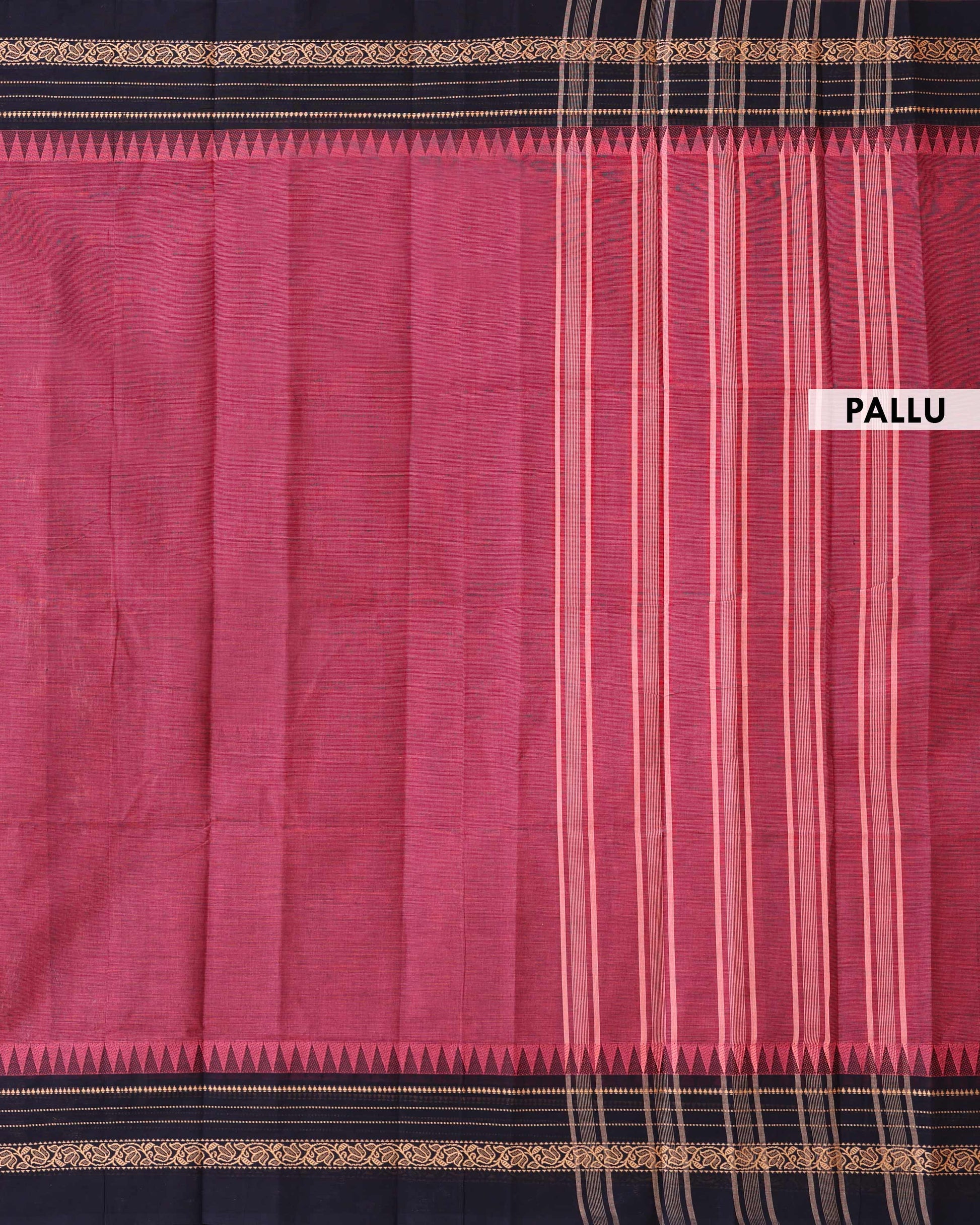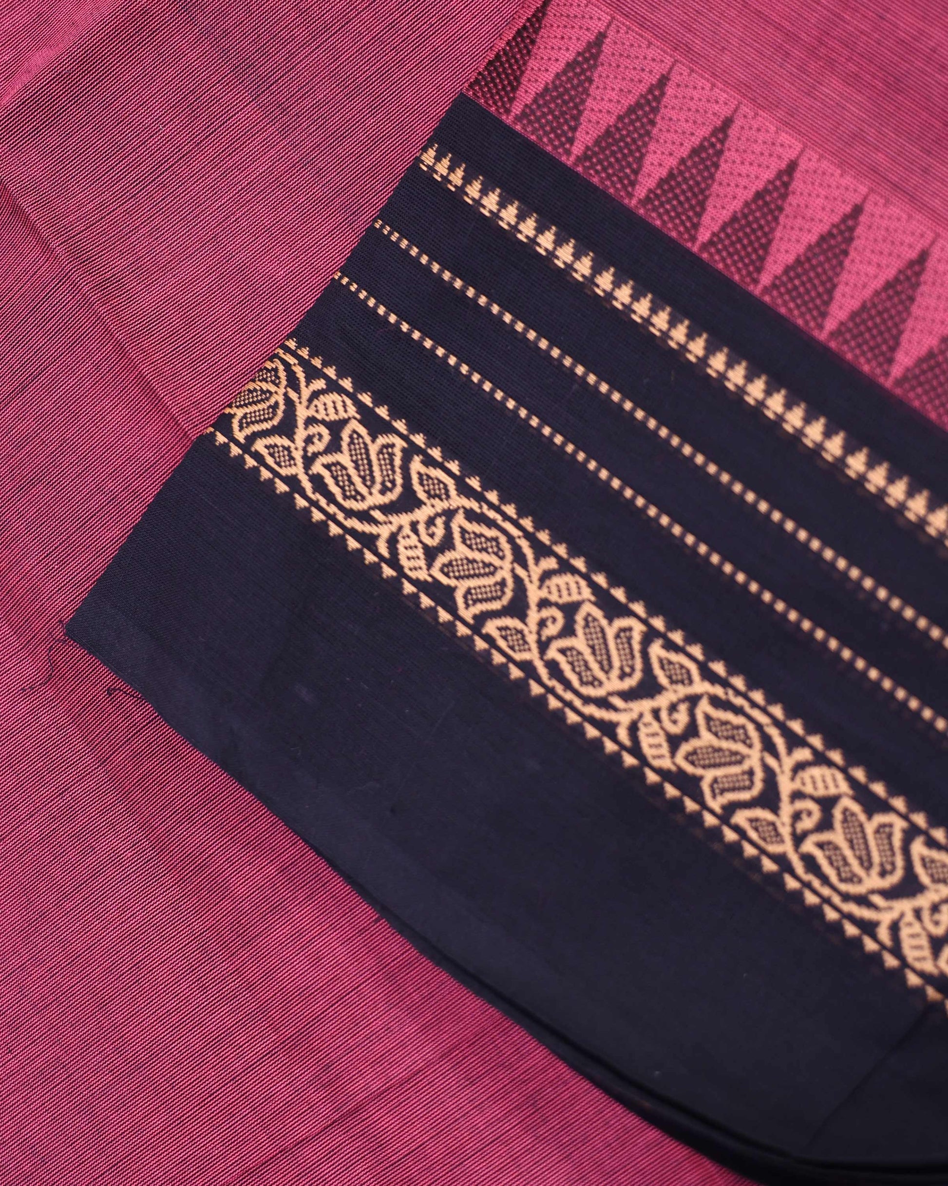 Traditional Venkatagiri Cotton Saree with Plain Body and Zari Woven Intricate Floral Motif Contrast Border - Onion Pink