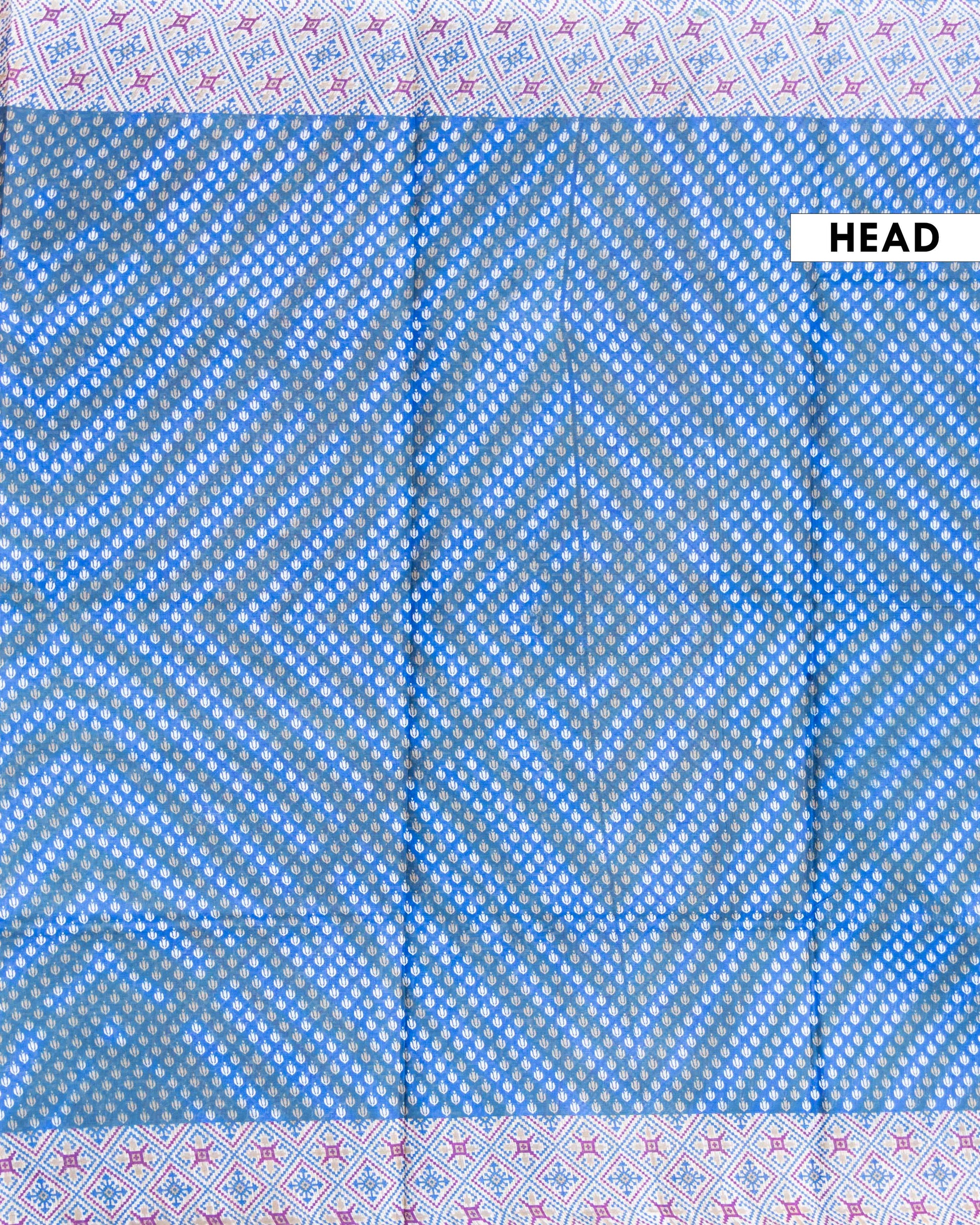 Traditional Voile Cotton Saree with All-Over Buti Motifs and Intricate Geometric Pallu- Blue