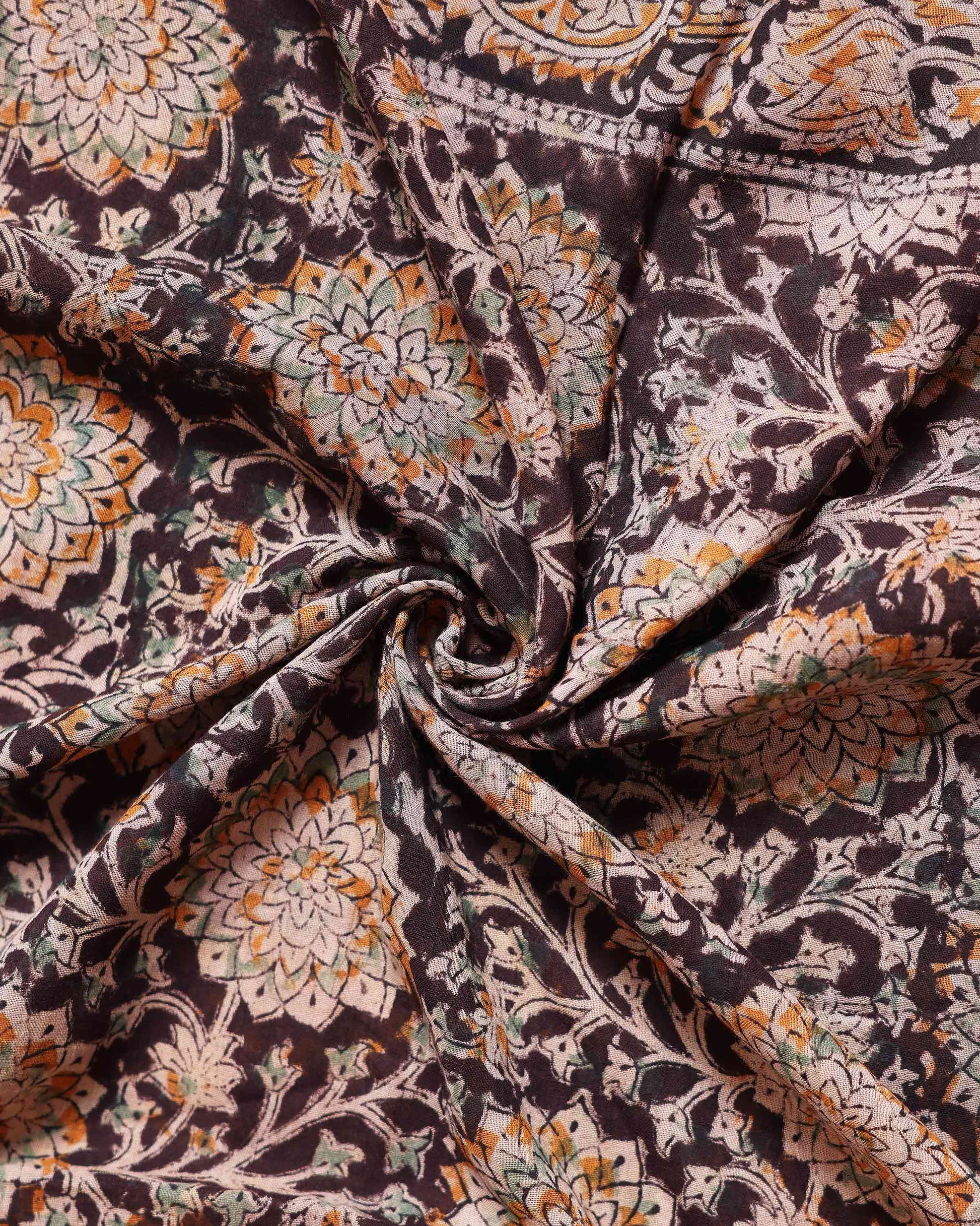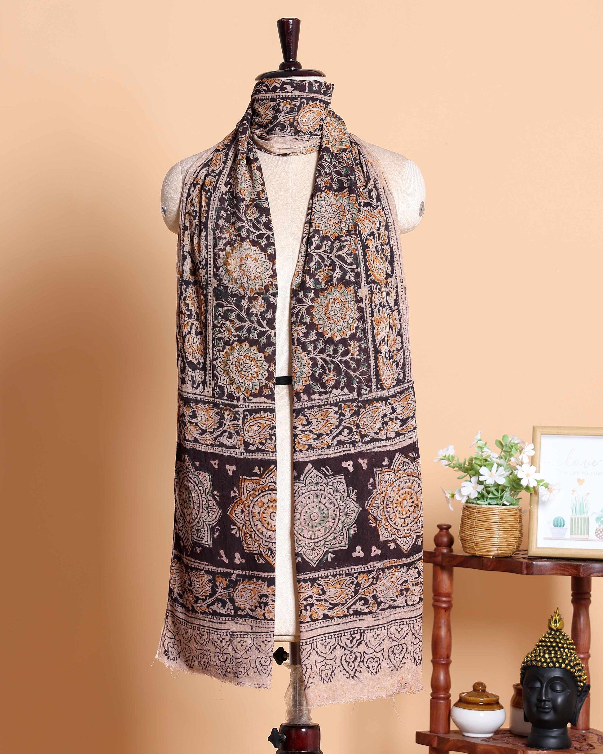 Traditional Women's Kalamkari Printed Dupatta with Floral and Geometric Motifs - Multi