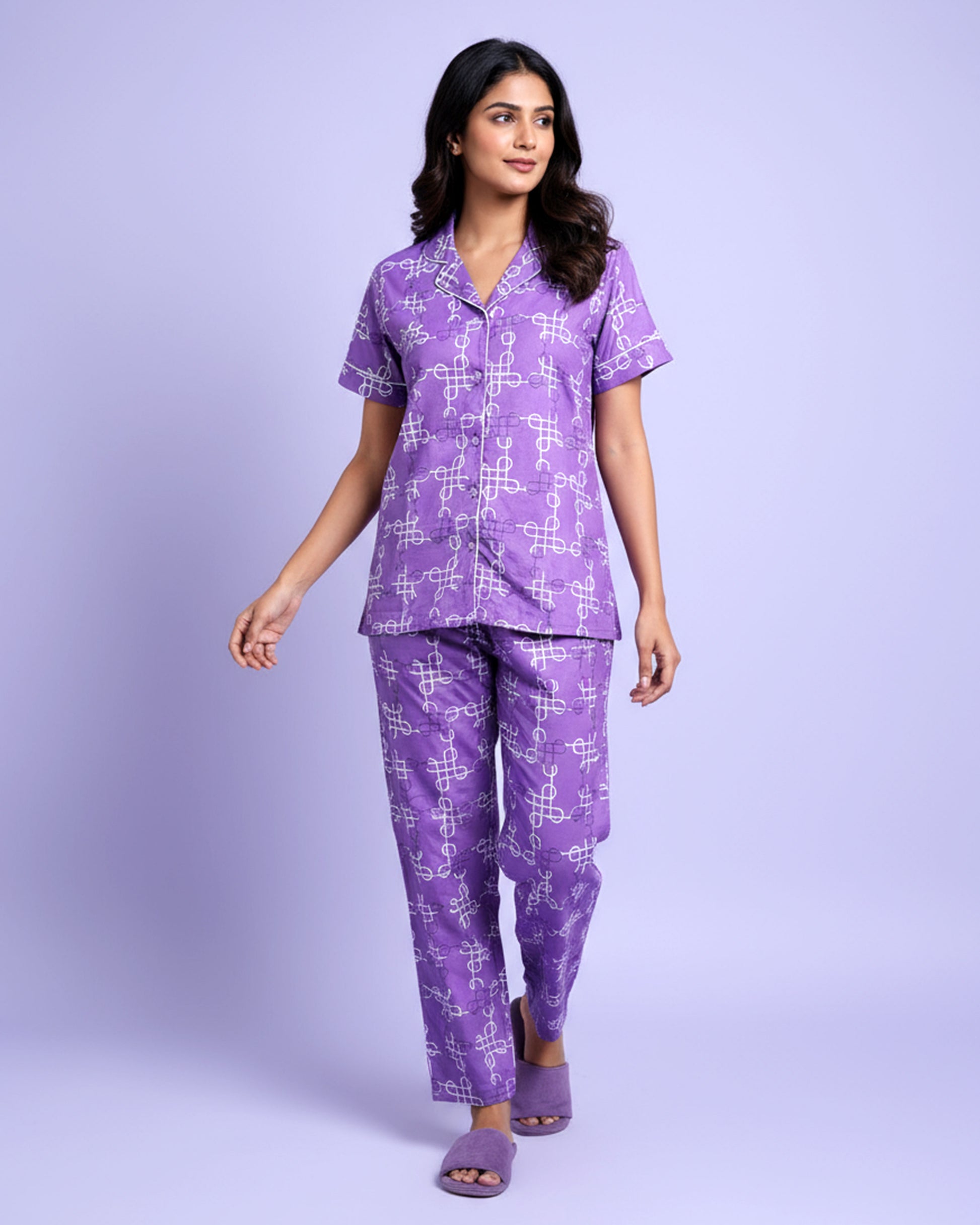 Elevate style with this purple women's nightwear set crafted from soft breathable Rayon for ultimate comfort.
