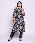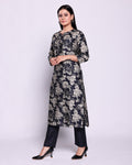 Women's Floral Print Straight Kurta & Palazzo Set - Black