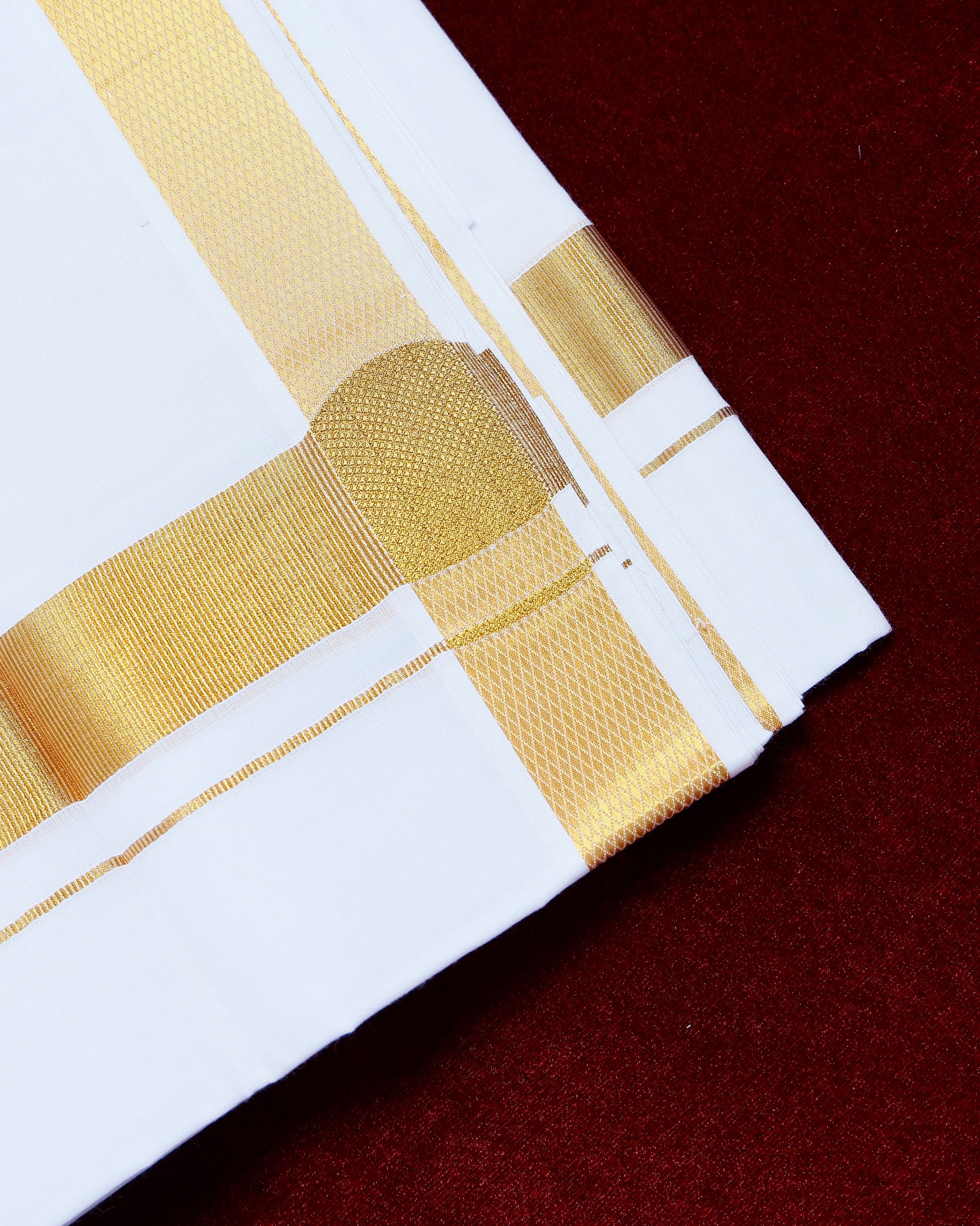 Men's Alaya Cotton Dhoti with Elegant Gold Zari Border - White