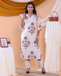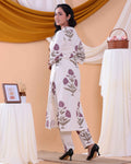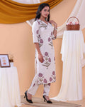 Women’s Floral Printed Kurta Set with Elegant Stitch Detailing - Off White