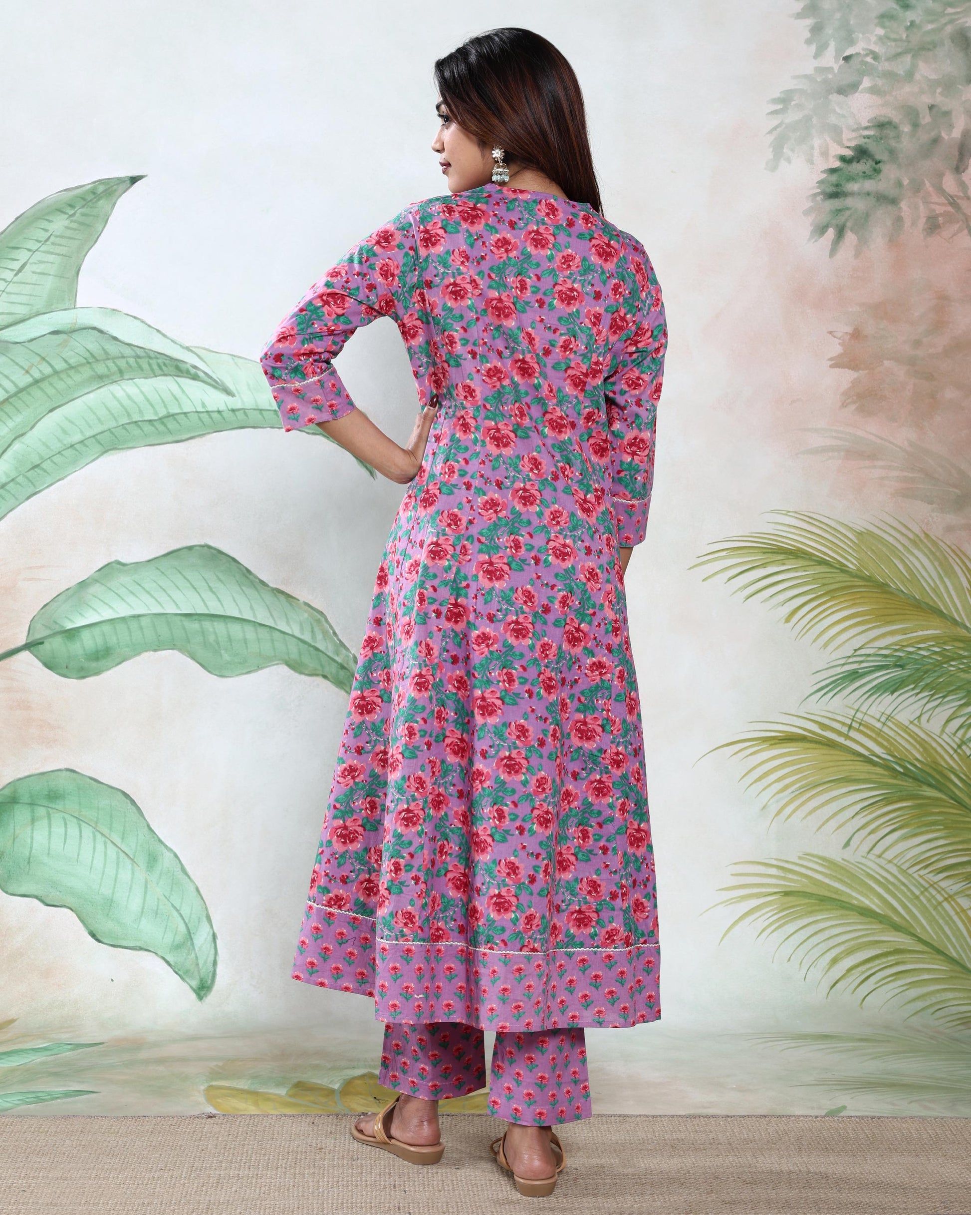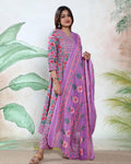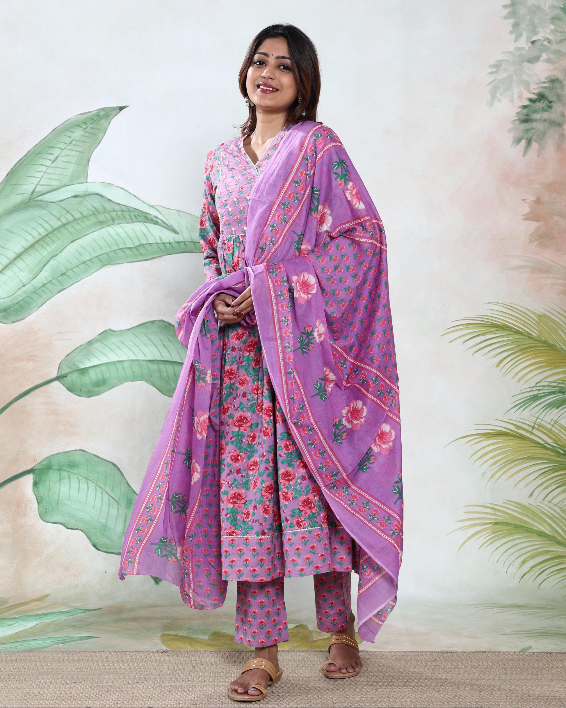 Women’s Floral Printed Readymade Salwar Suit Set with Matching Dupatta - Lavender