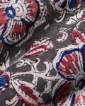 - This stunning grey, red, and blue floral block print fabric is perfect for crafting a unique and stylish blouse