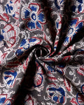 Women’s Handloom Cotton 1 Meter Blouse Material with Floral Vine Block Print - Charcoal