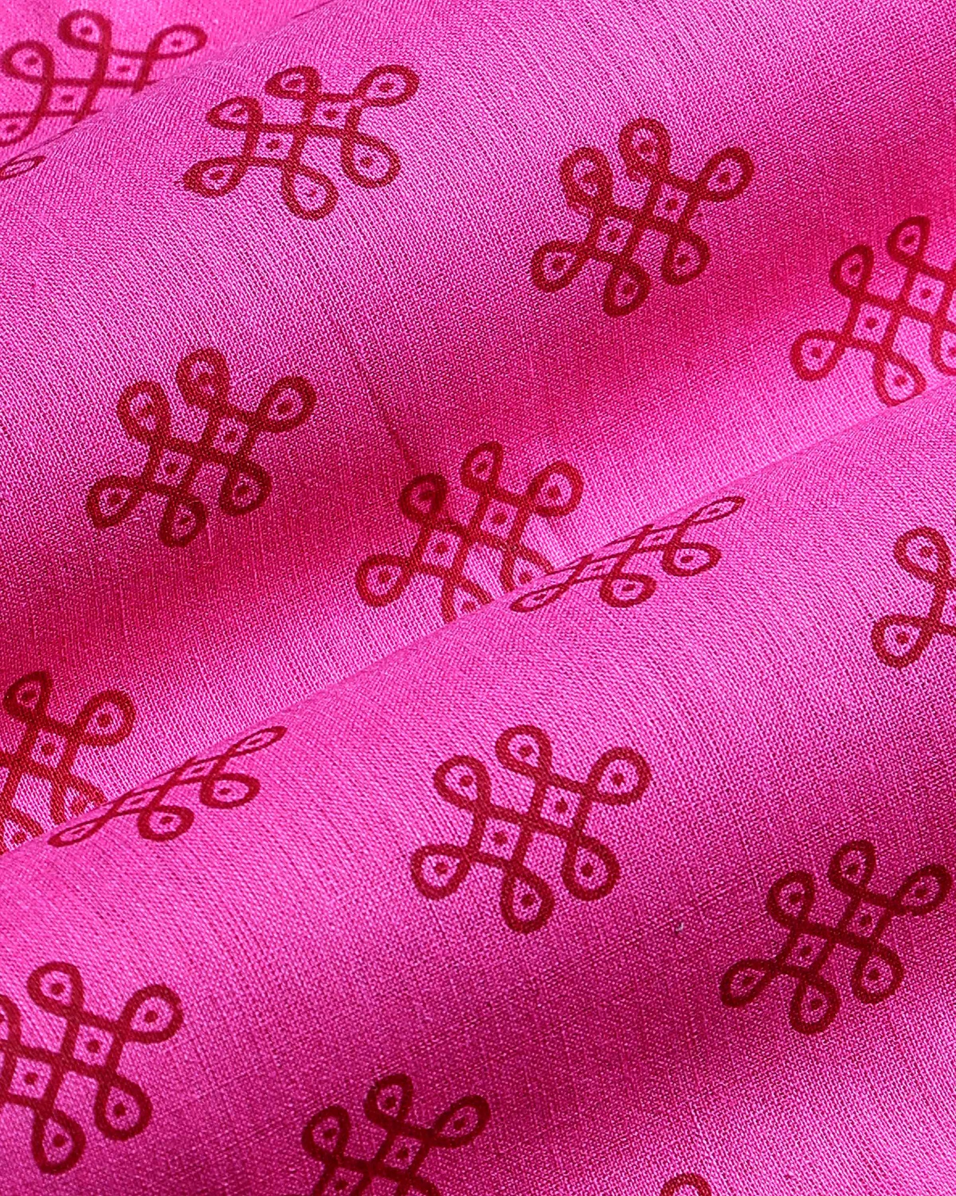 - Add a vibrant touch to your wardrobe with this pink Kalamkari cotton blend blouse material.