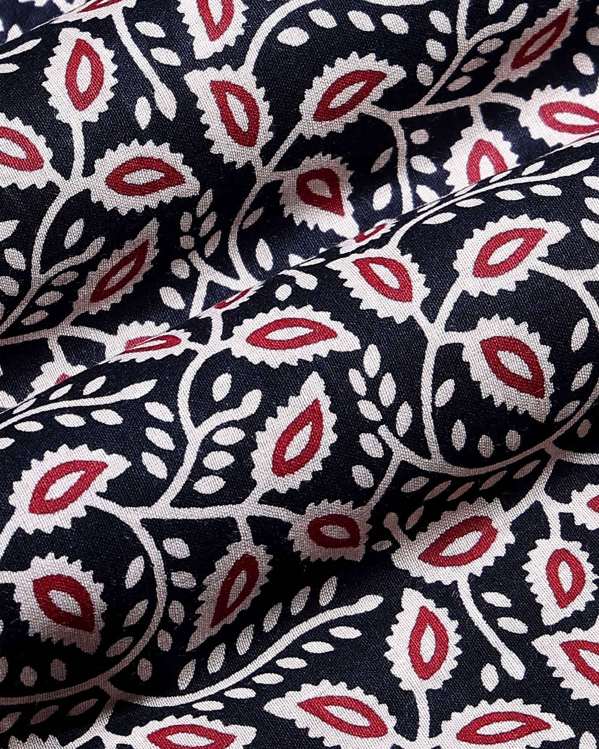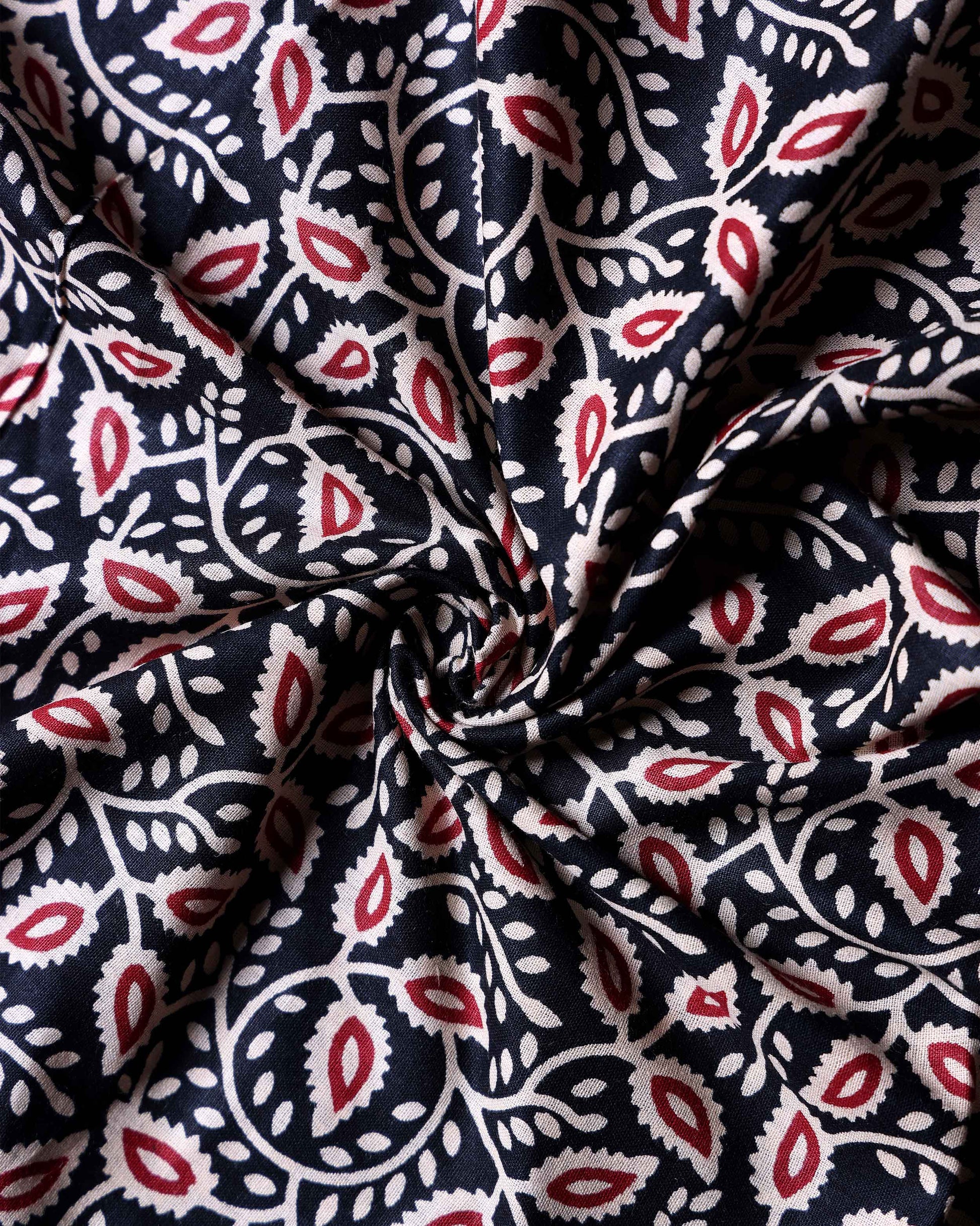 - Featuring intricate red and cream leaf motifs on a deep black base this fabric is perfect for creating a unique and stylish blouse