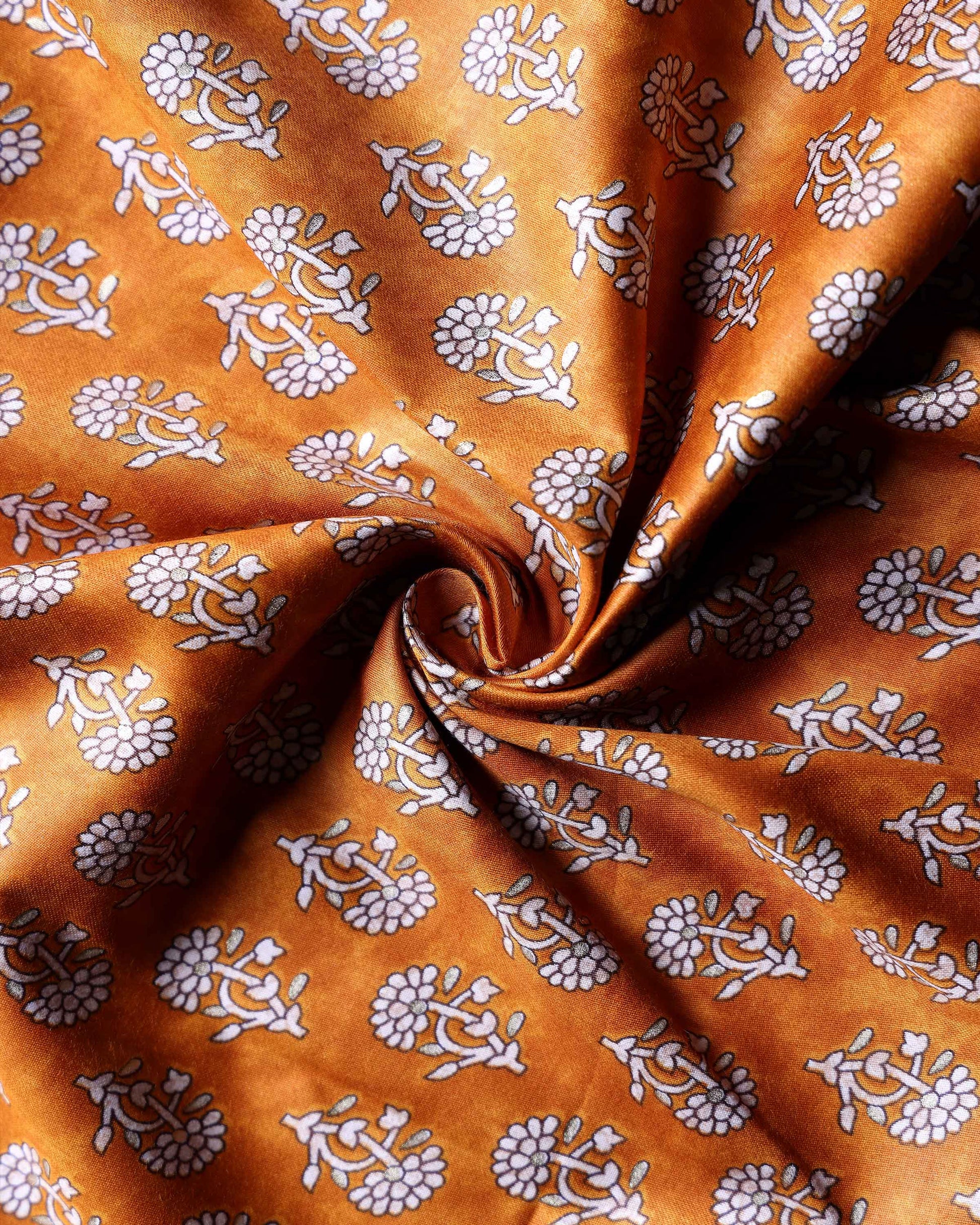 - This orange hand block printed cotton fabric is perfect for creating a stylish blouse or dress material.