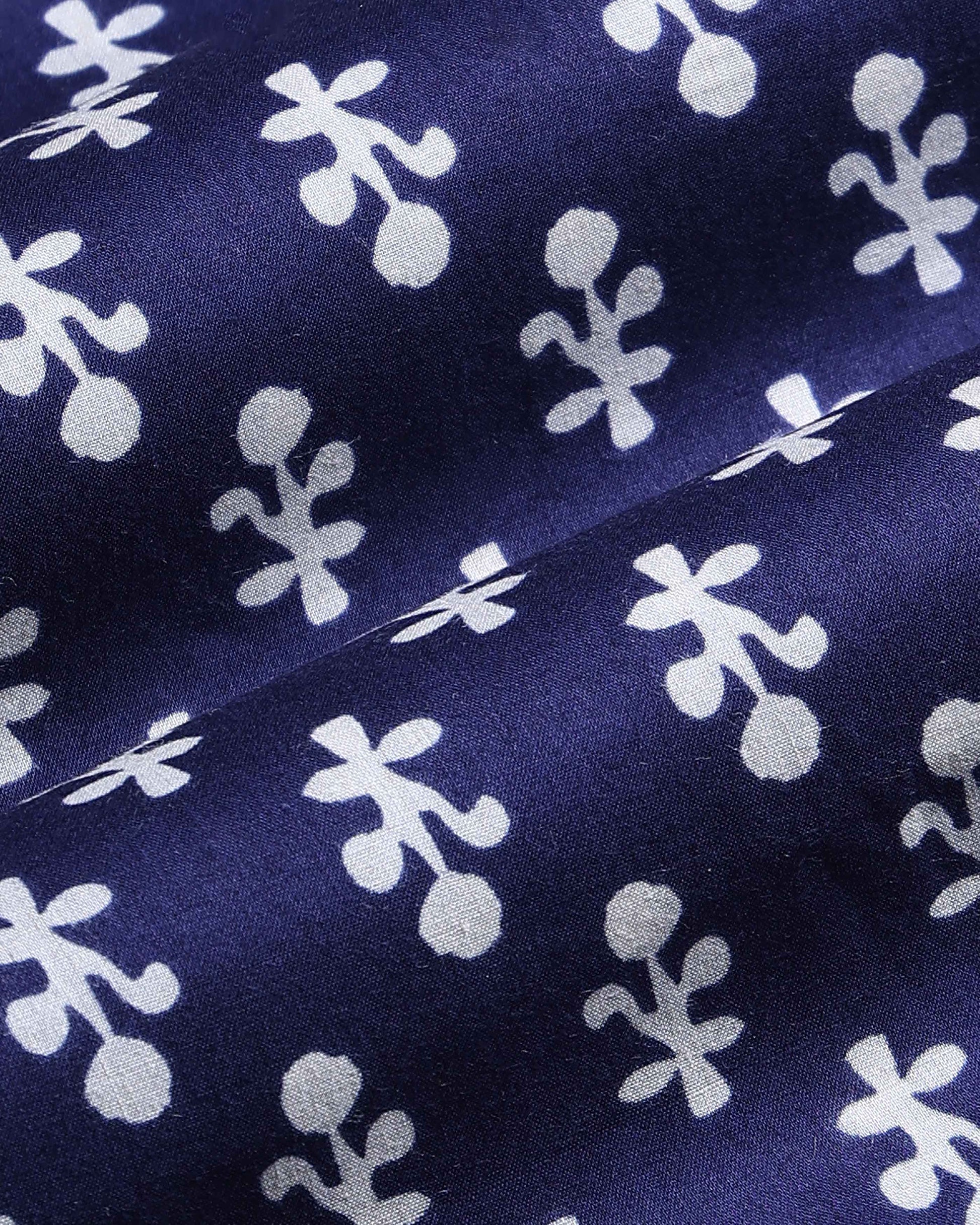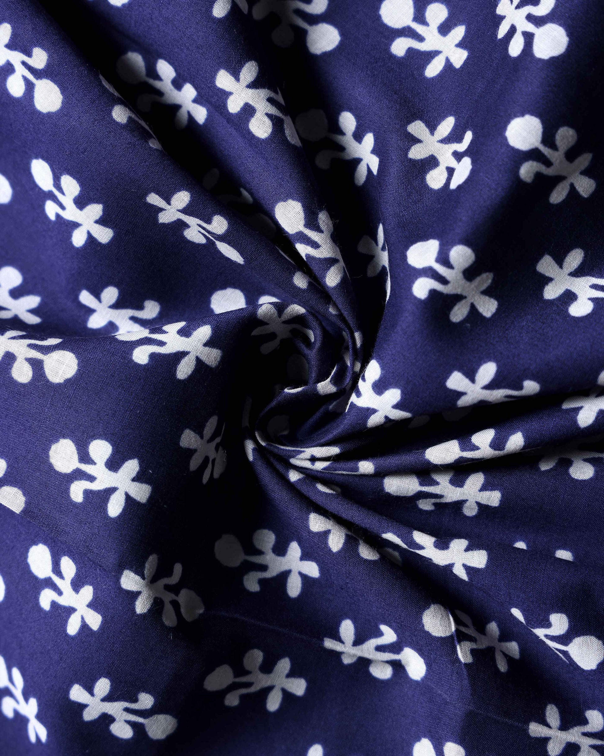 - Elevate your style with this stunning navy blue and white floral block print cotton fabric.