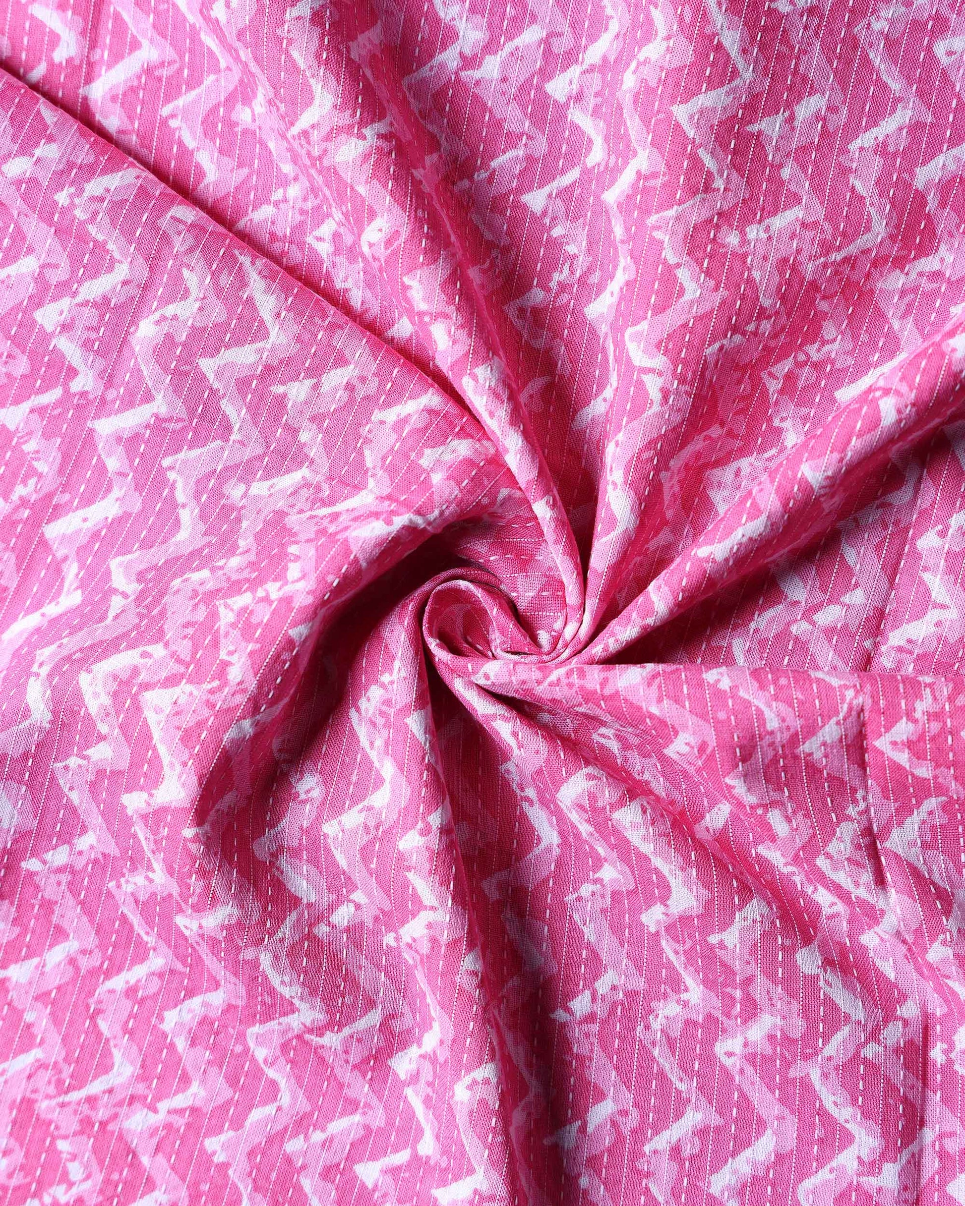 Women’s Handloom Cotton 1 Meter Blouse Material with Zigzag Pattern - Pink