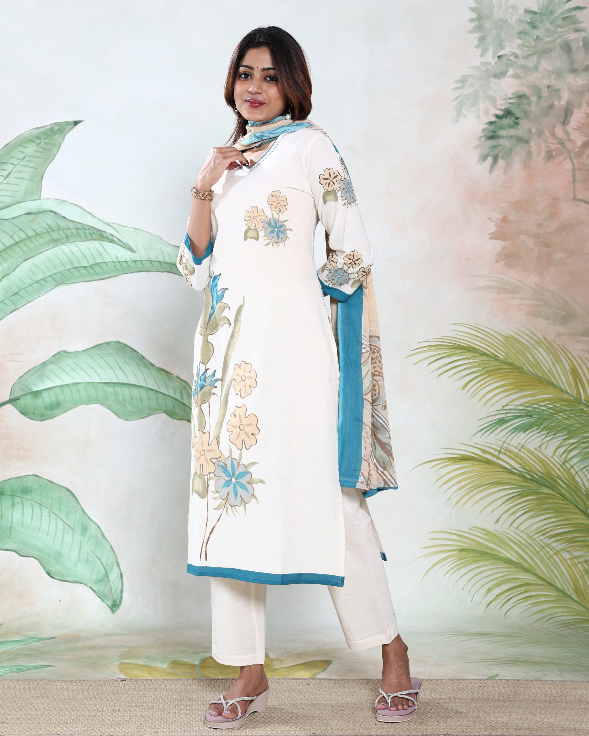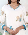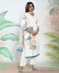 Women’s Readymade Salwar Suit Set with Floral Printed Straight Kurta, Matching Pants and Elegant Dupatta – Off White