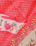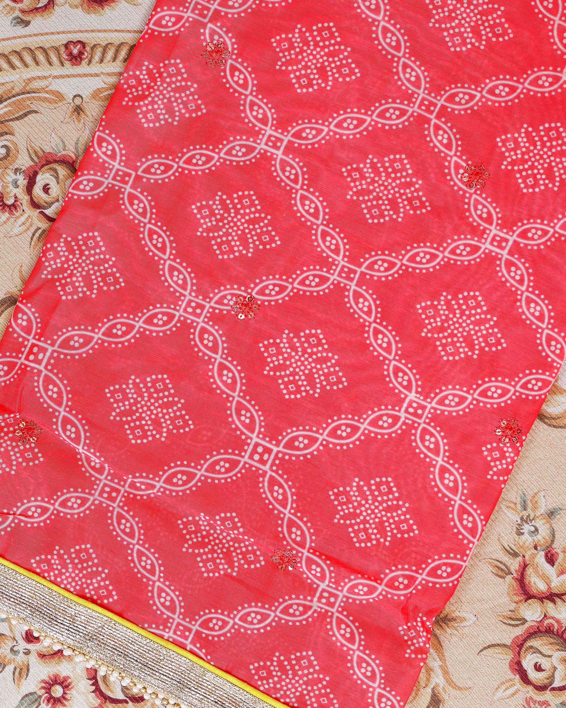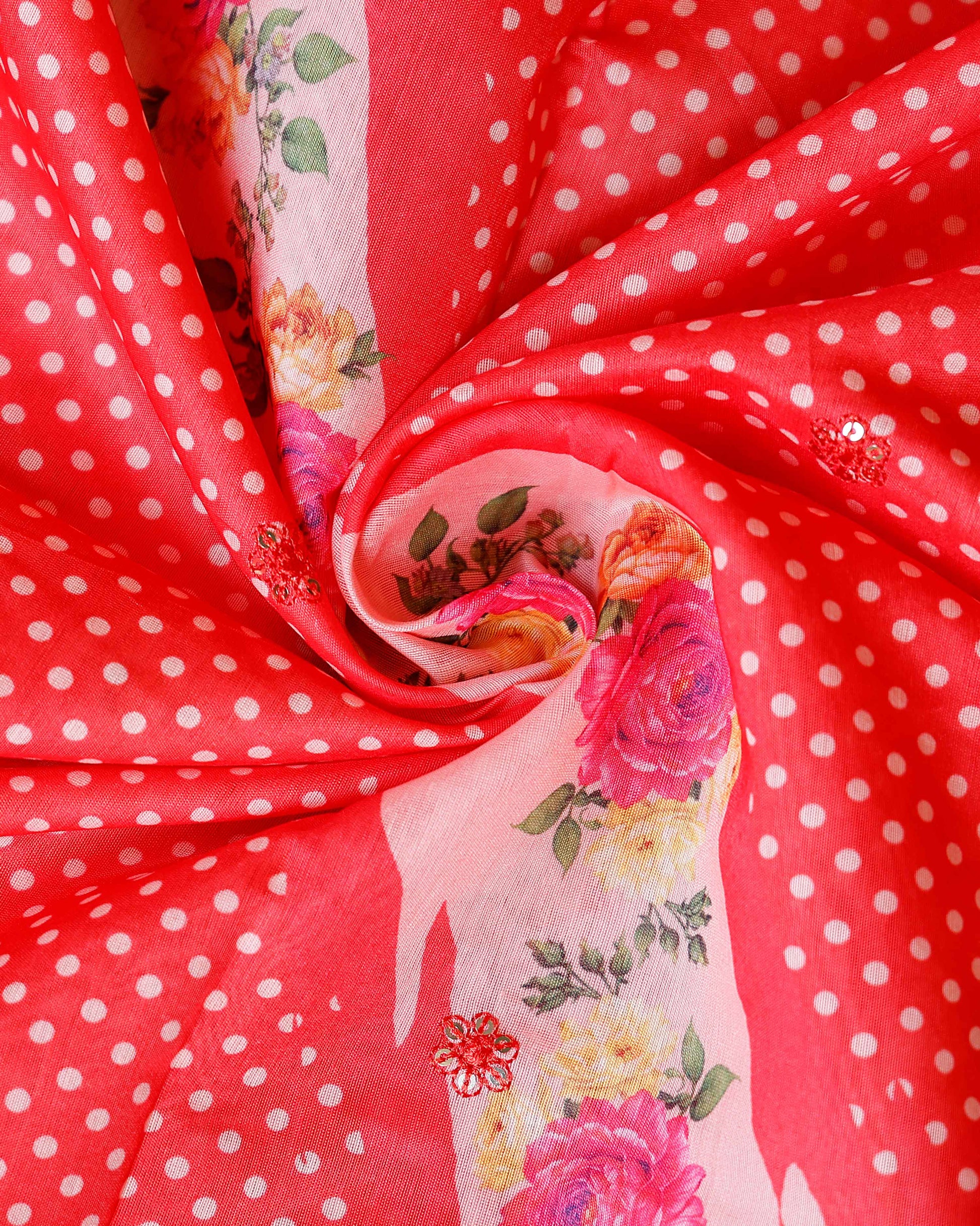 Women's Embroidered Neckline & Printed Unstitched Salwar Material with Coordinated Dupatta - Red