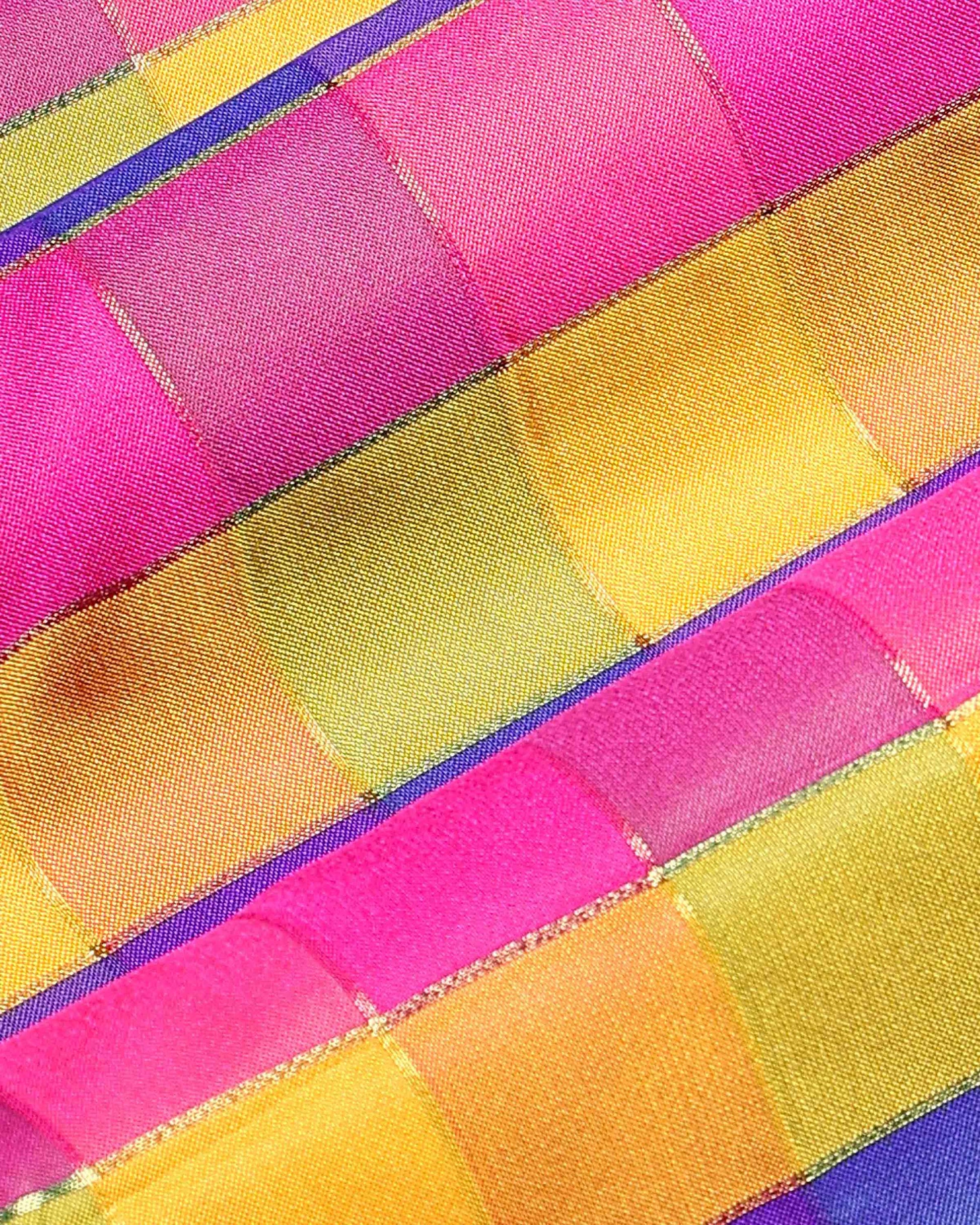 - This is a vibrant multi colored checked Semi Silk fabric often referred to as a classic heritage design.