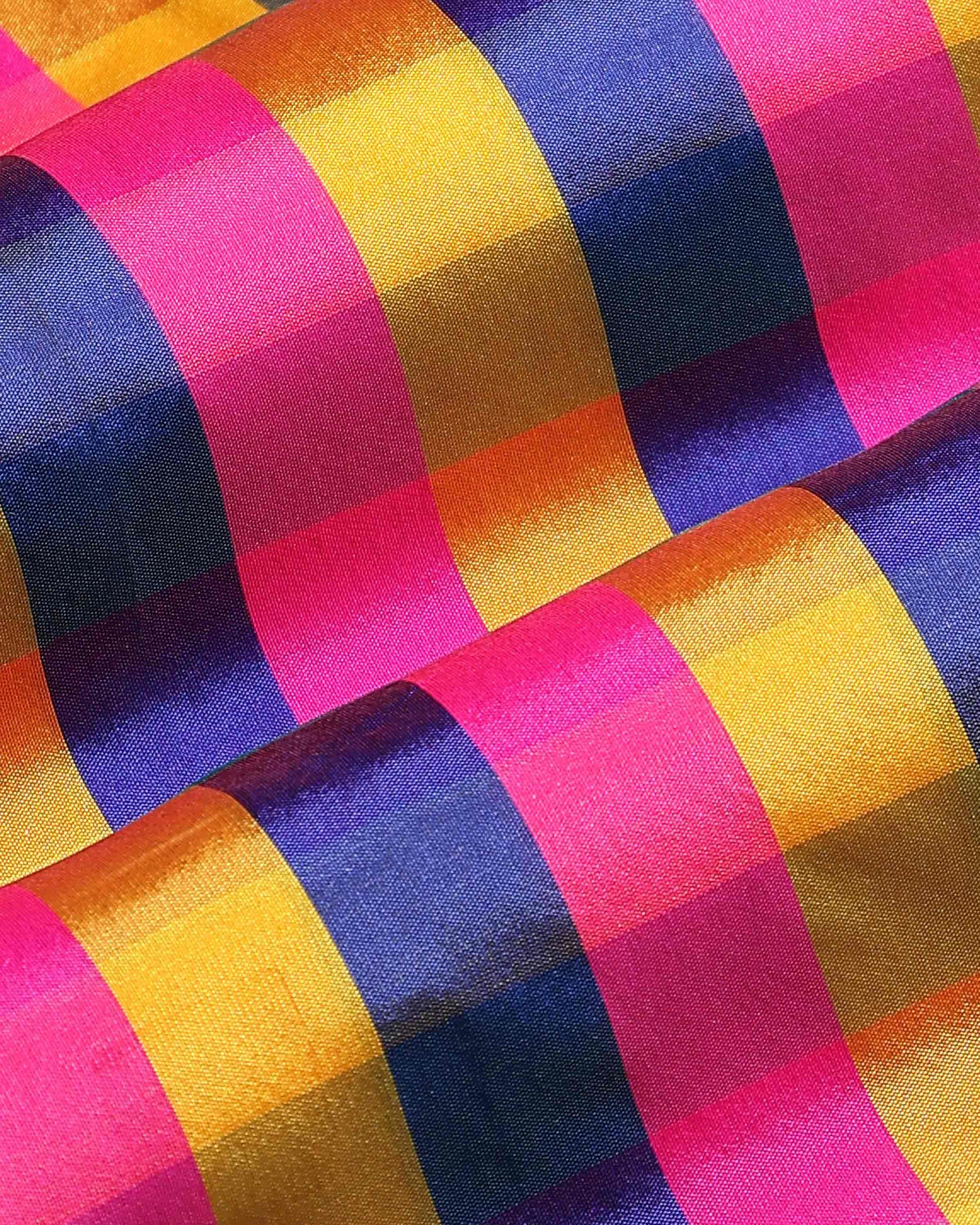 - This is a vibrant multi colored checked Semi Silk fabric often referred to as a classic heritage design.