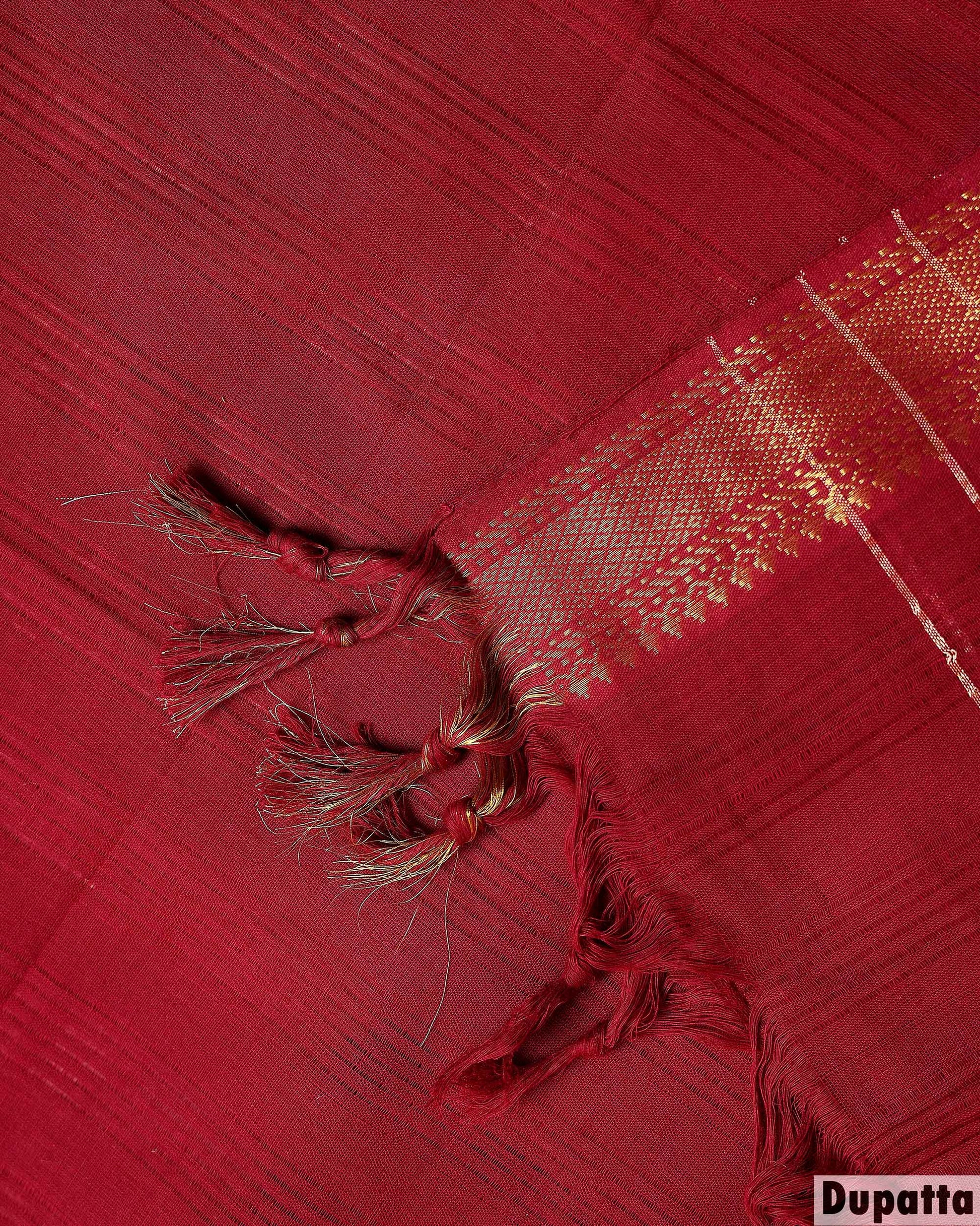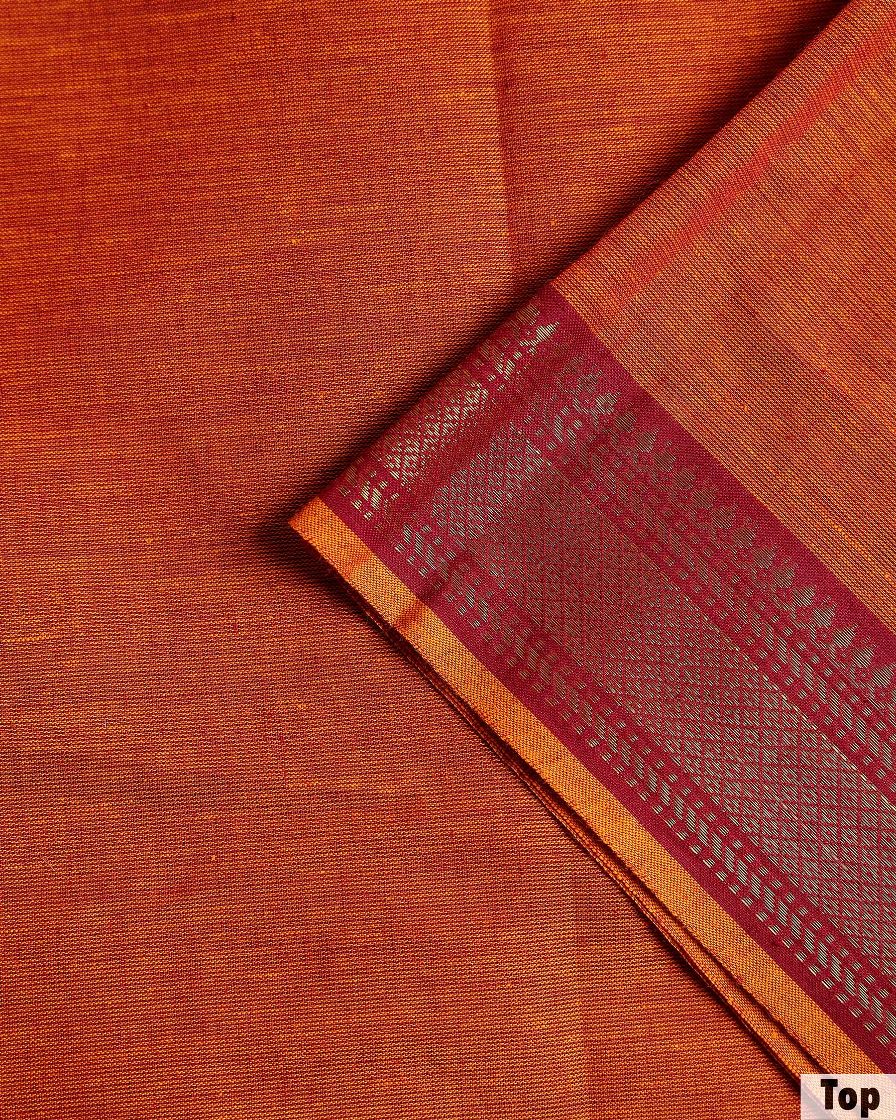 Women's Elegant Cotton Handloom Unstitched Salwar Suit Set Top 2.5m, Pant 2m, Dupatta 2.25m with Zari Border - Rust Orange