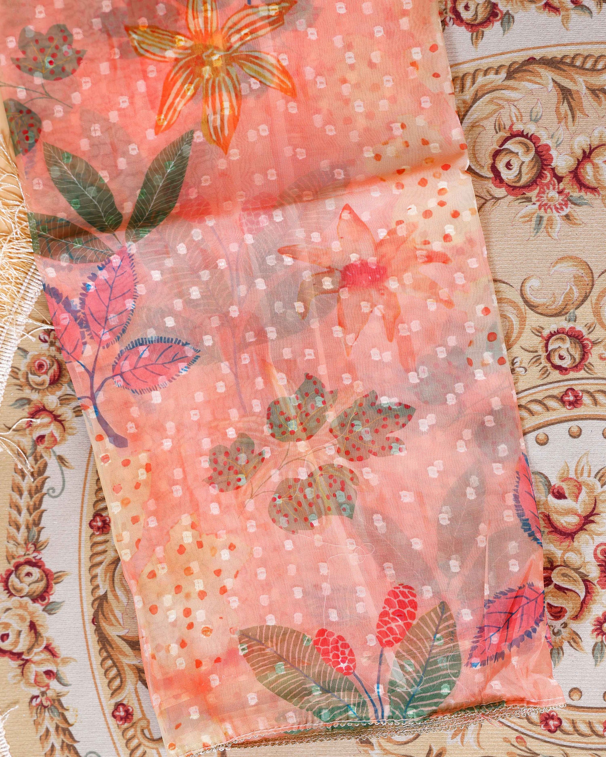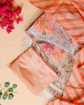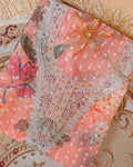 Women's Elegant Floral & Paisley Print Salwar Suit Material with Intricate Neck Embroidery - Peach