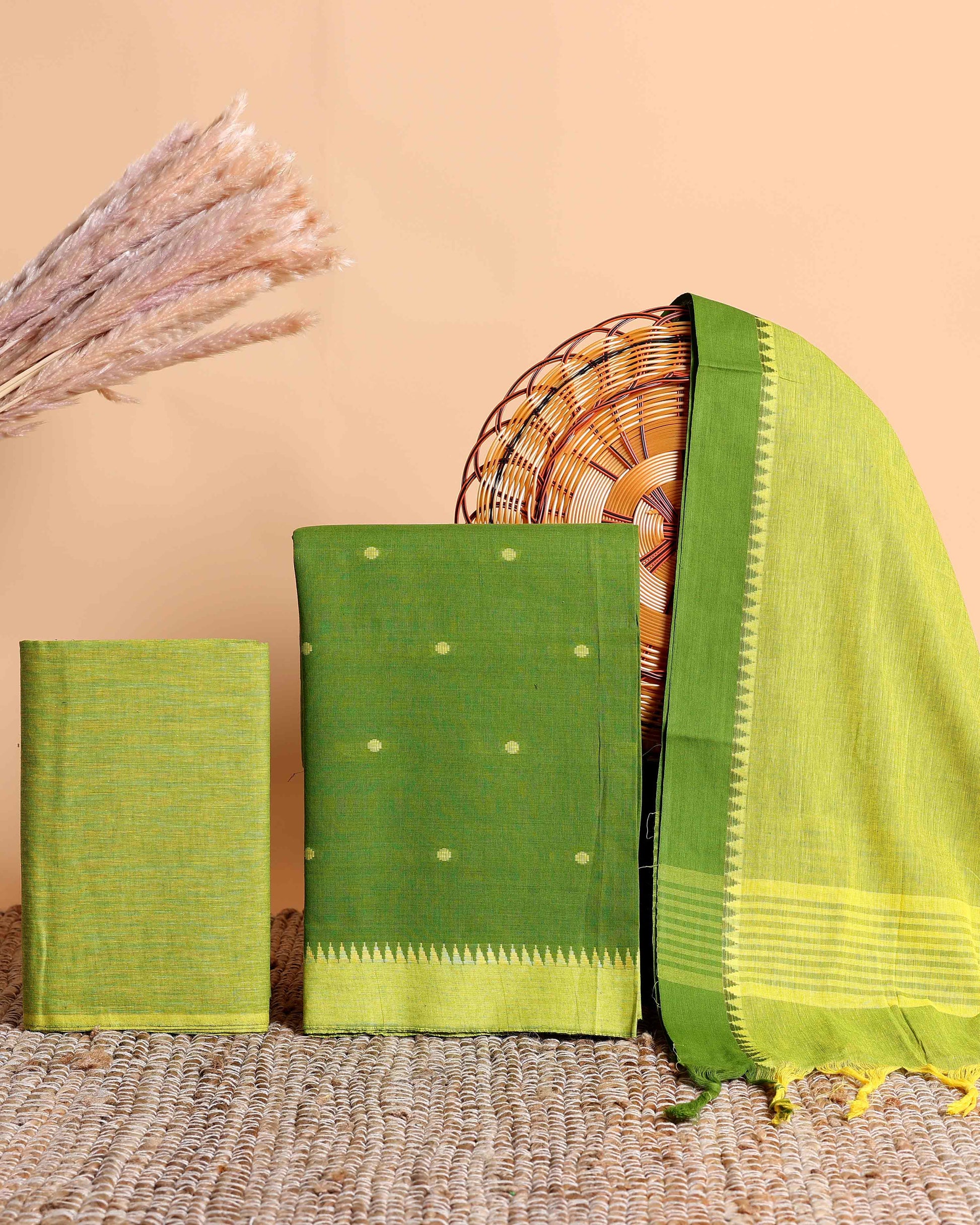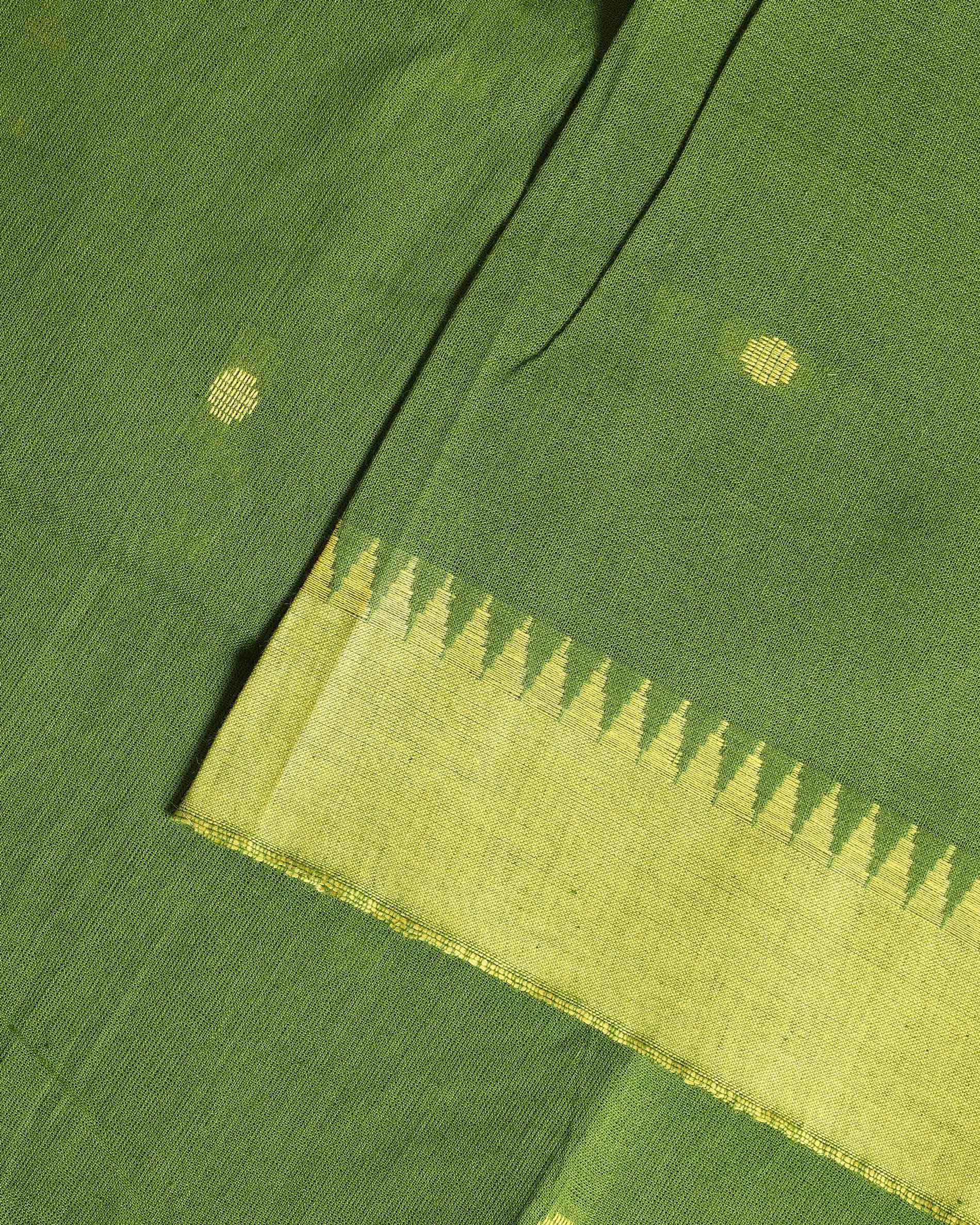 Women's Elegant Mangalagiri Cotton Salwar Material - Top 2.5m, Pant 2m, Dupatta 2.25m with Temple Border - Green