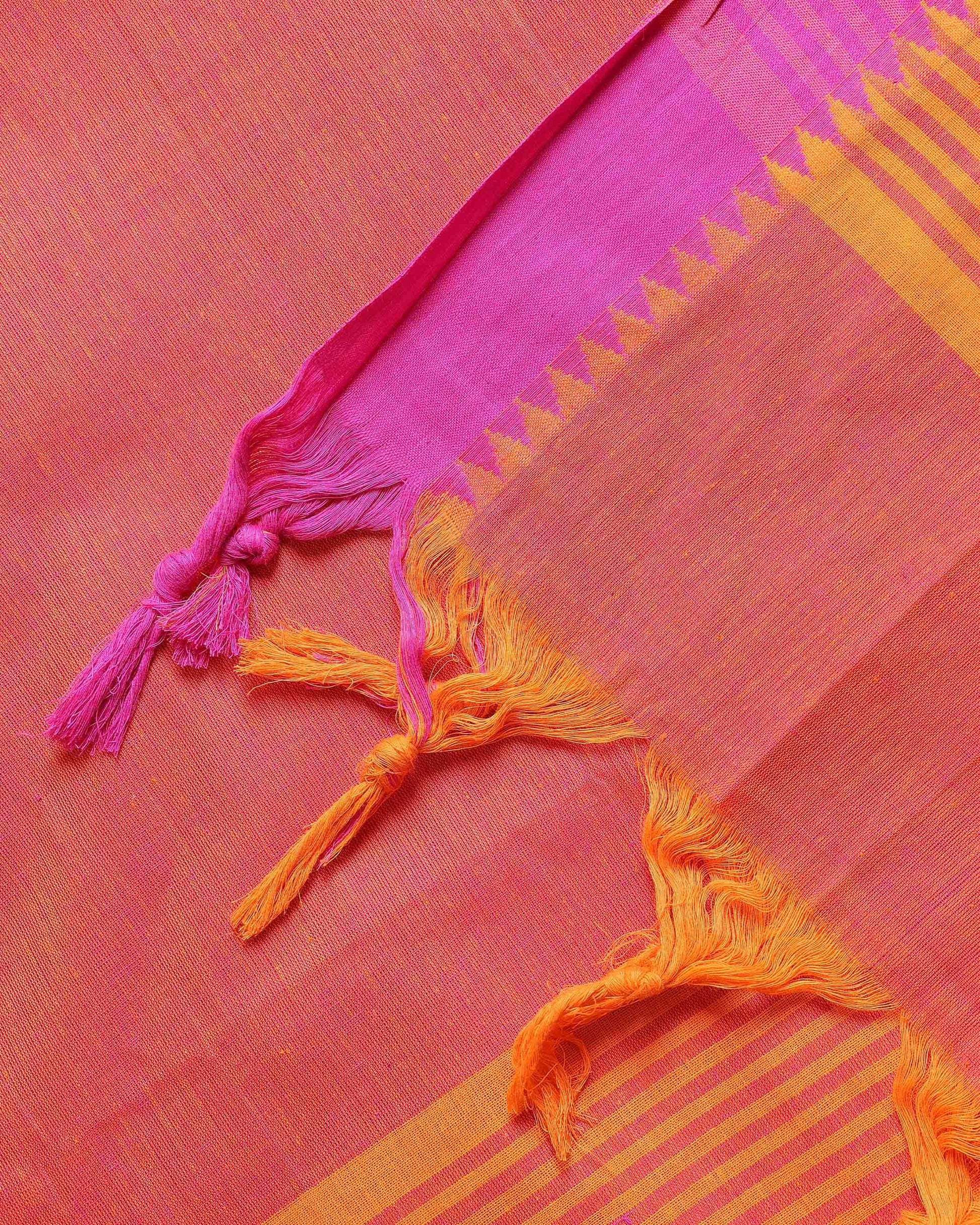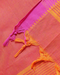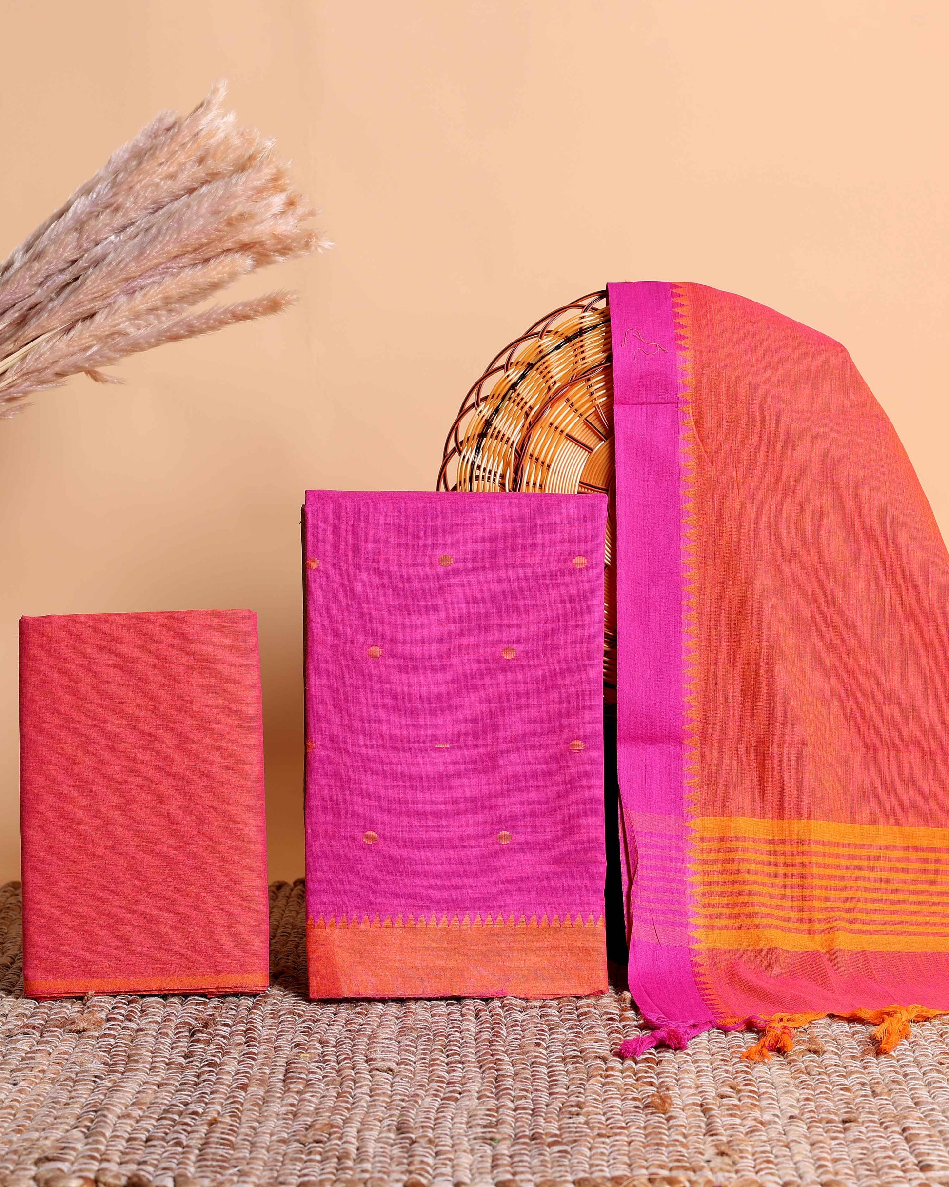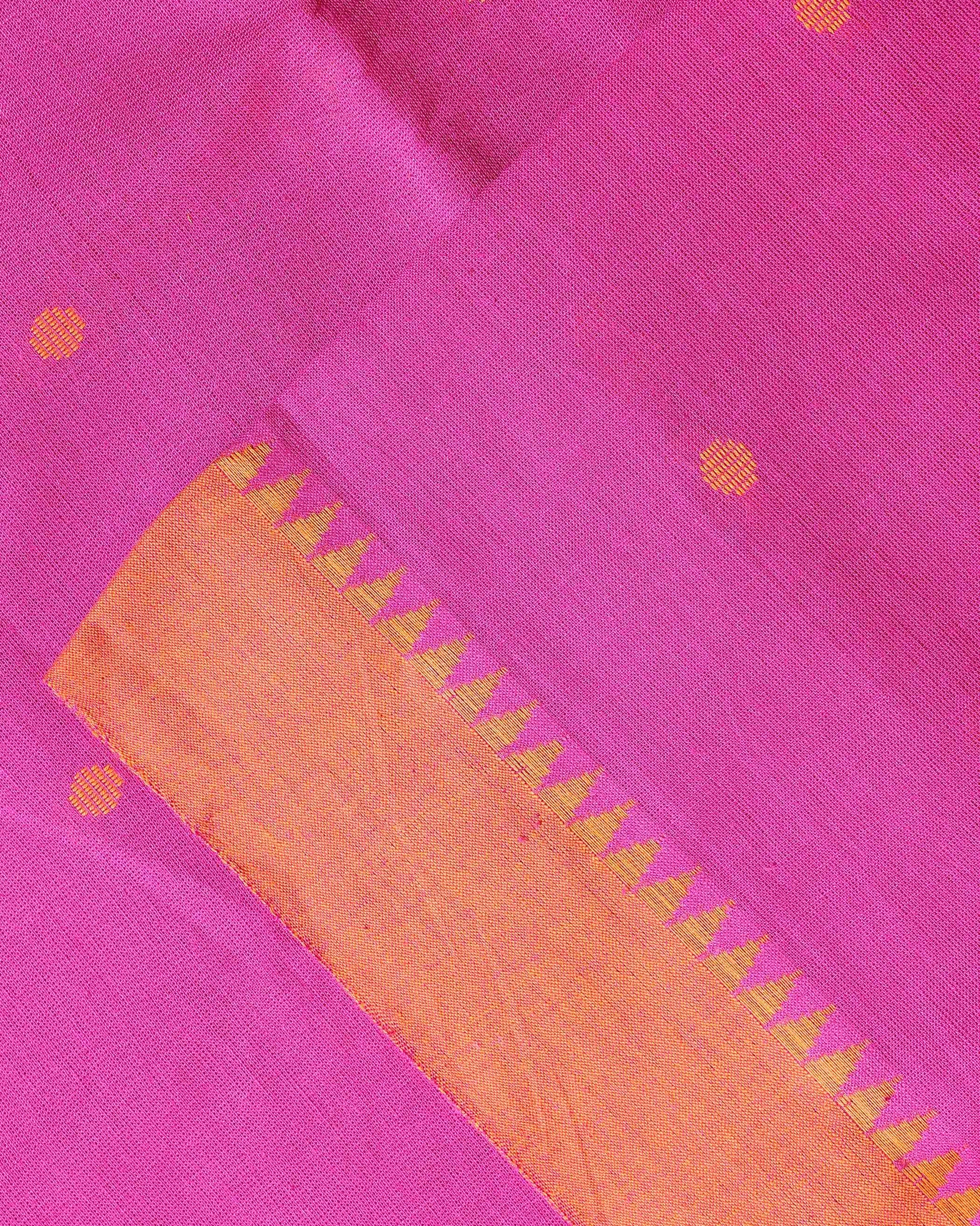 Women's Elegant Mangalagiri Cotton Salwar Material - Top 2.5m, Pant 2m, Dupatta 2.25m with Temple Border - Pink