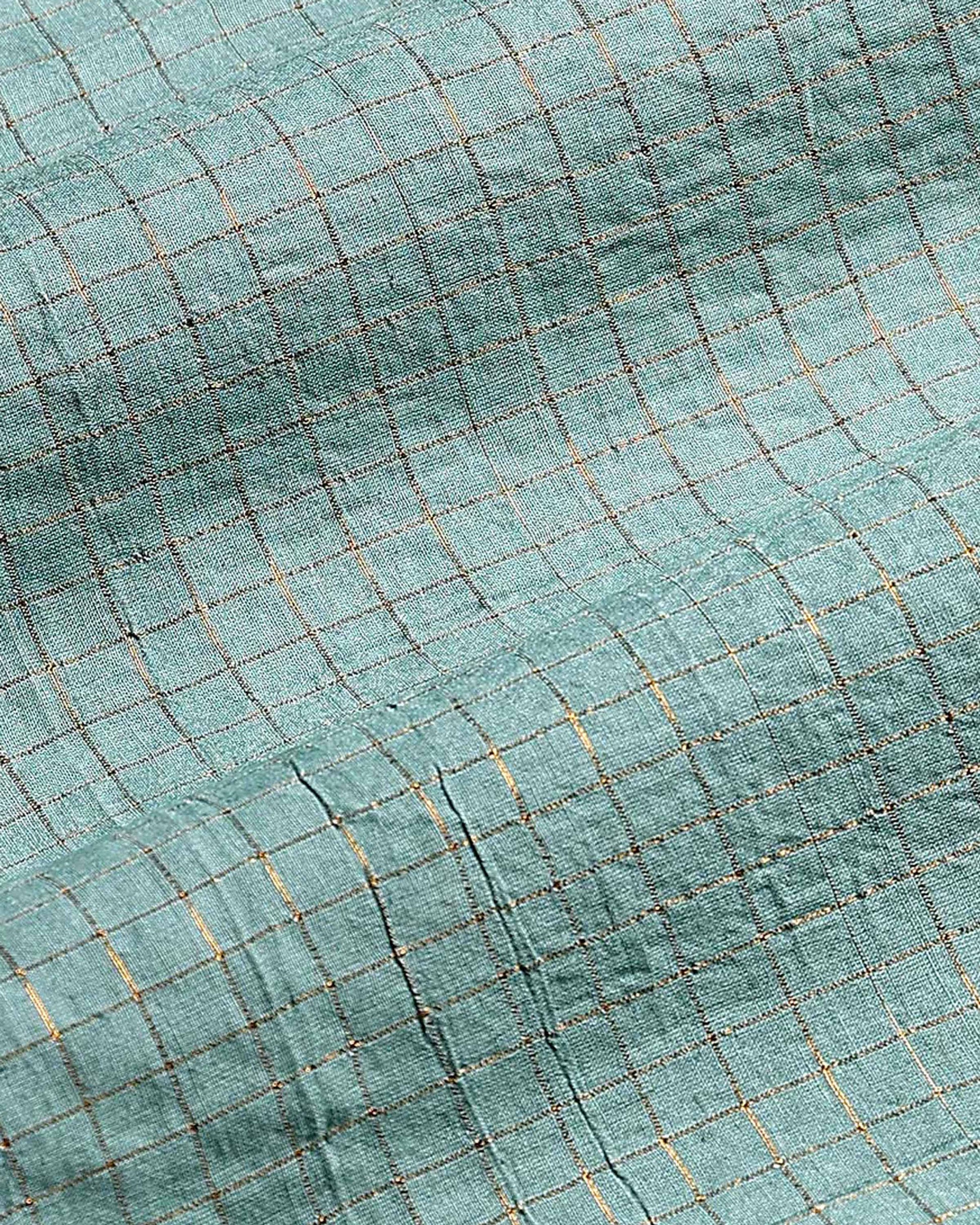 - Discover our stunning Pista Green textured blouse material elegant gold threads for a touch of luxury.