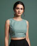 - Premium checked design blouse material crafted for comfort and style. Ideal for pairing with sarees, offering a crisp and classic tailored finish.